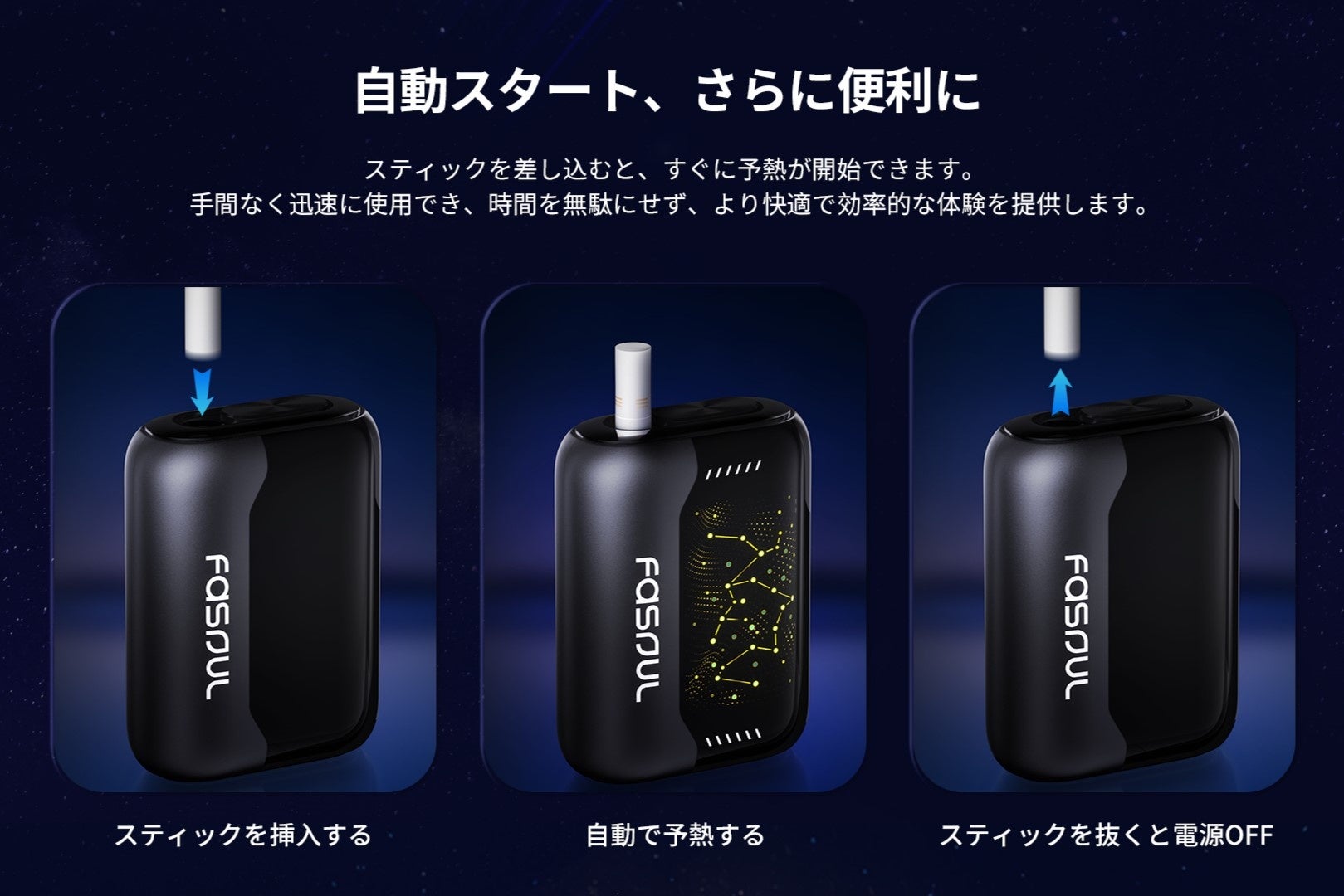 Fasoul(ファソウル)は、加熱式たばこ専用デバイスのパイオニアとして、2023年に日本市場に登場。洗練されたデザインと革新的な機能で、多くのユーザーに支持されています。