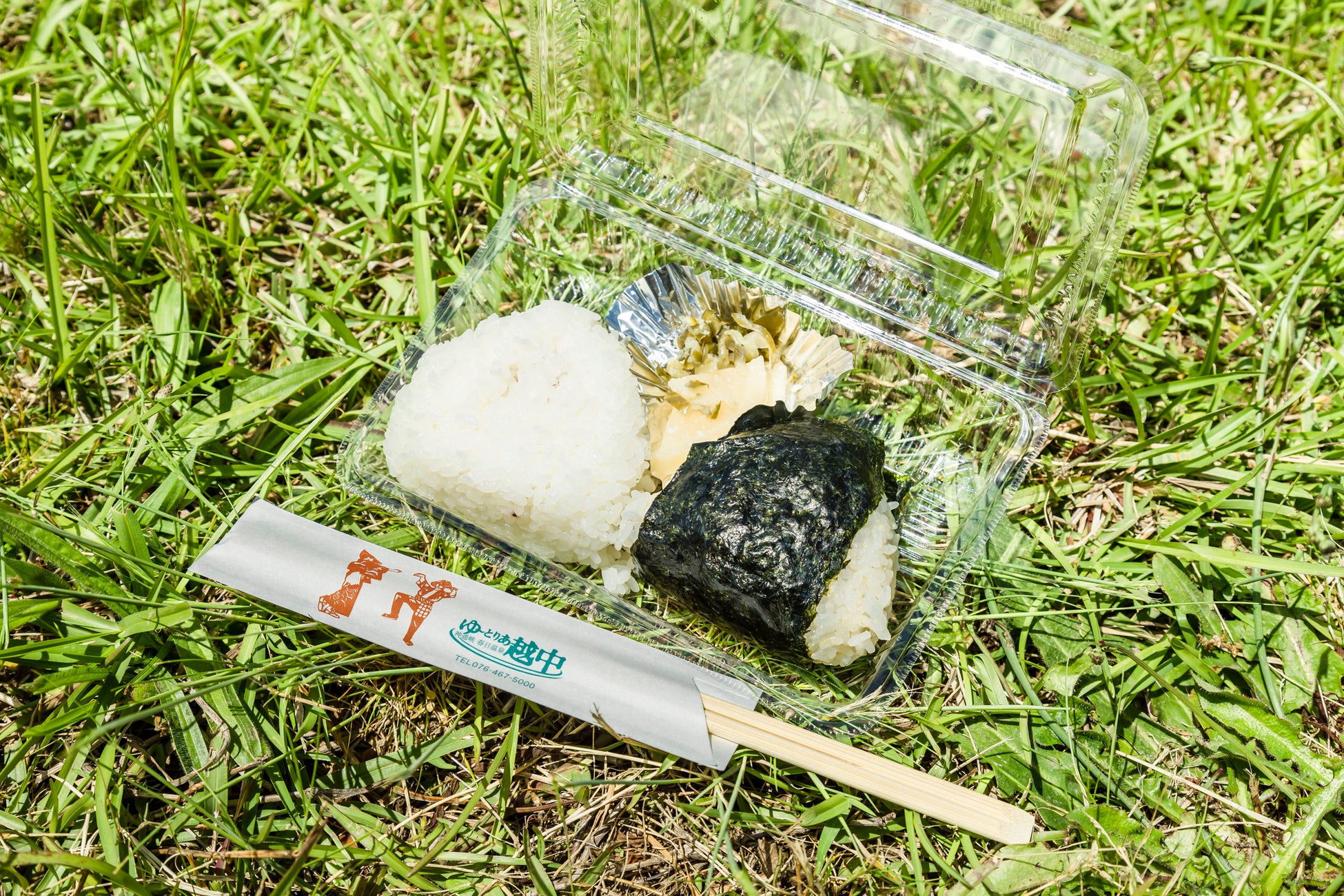 ・ ご昼食はおにぎり(五分搗き米・白米)2個とミネラルウォーター付きです。
