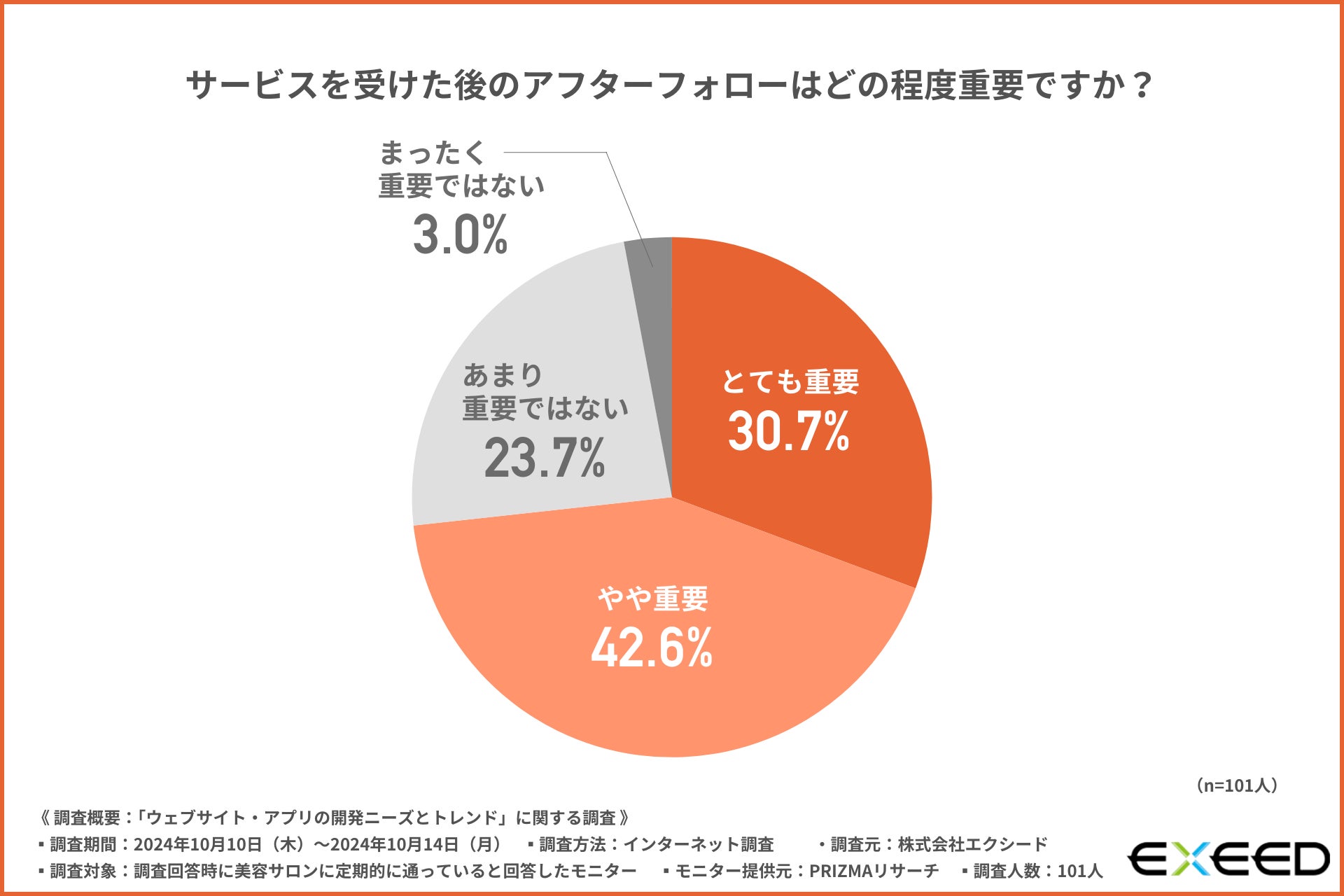 今回の調査で、サービスを受けた後のアフターフォローについて重要だと思う方が多いことが明らかになりました。