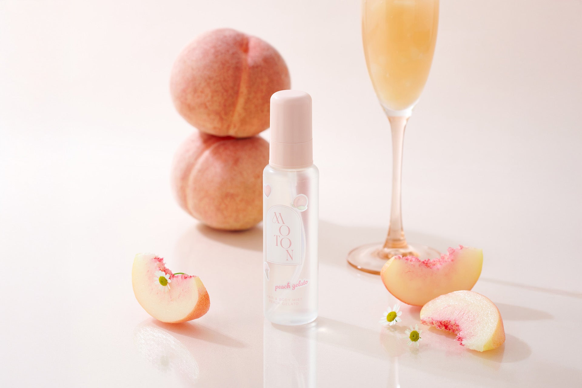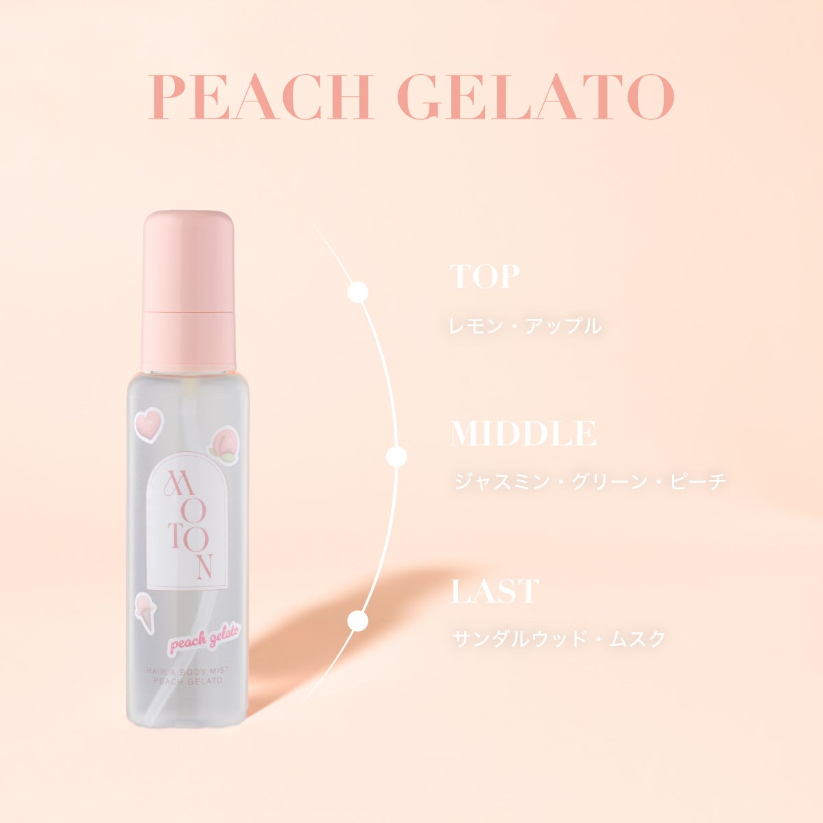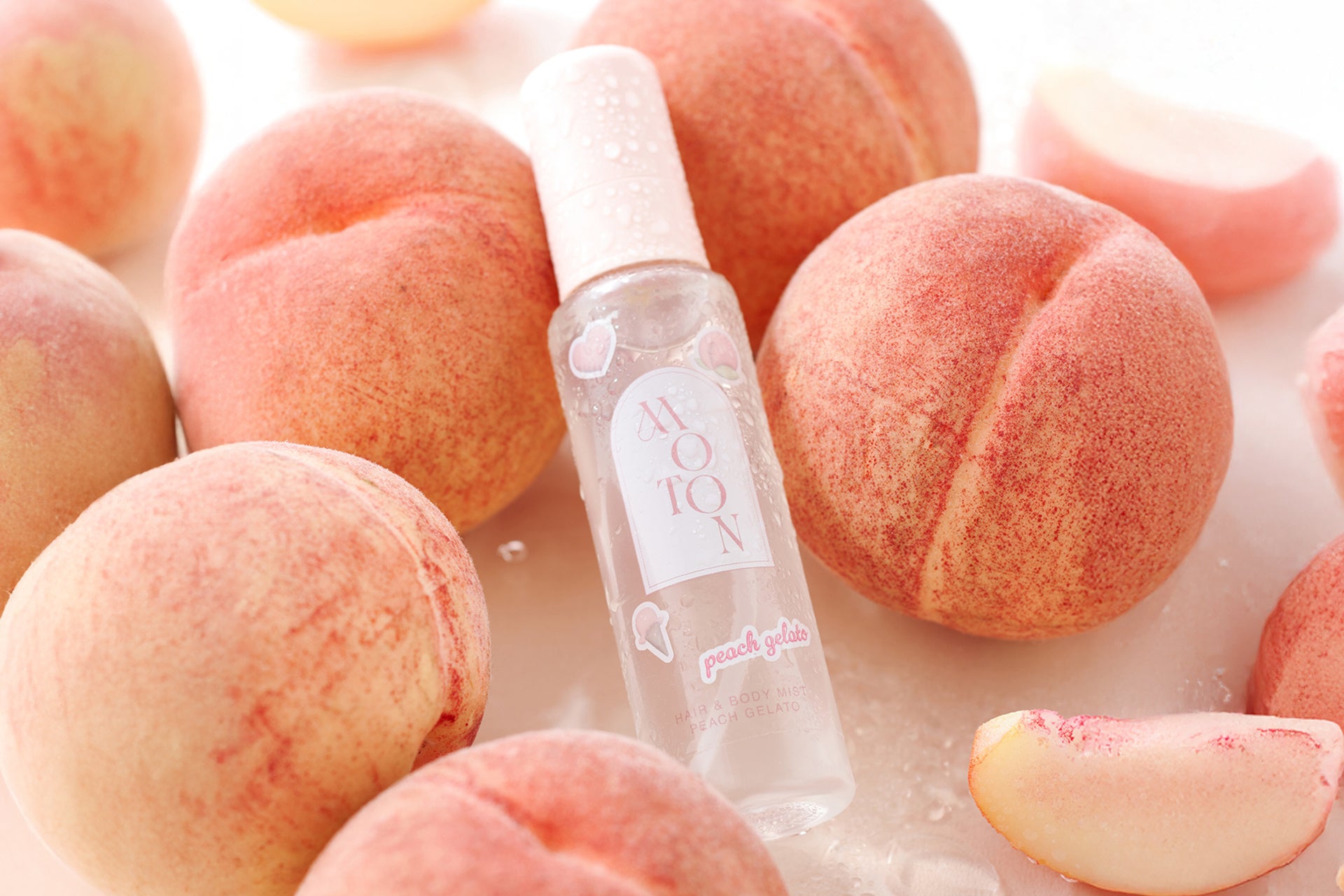 「MOTON」の大人気ヘア&ボディミストから数量限定でピーチジェラートの香りが登場!5月26日より全国で発売開始。