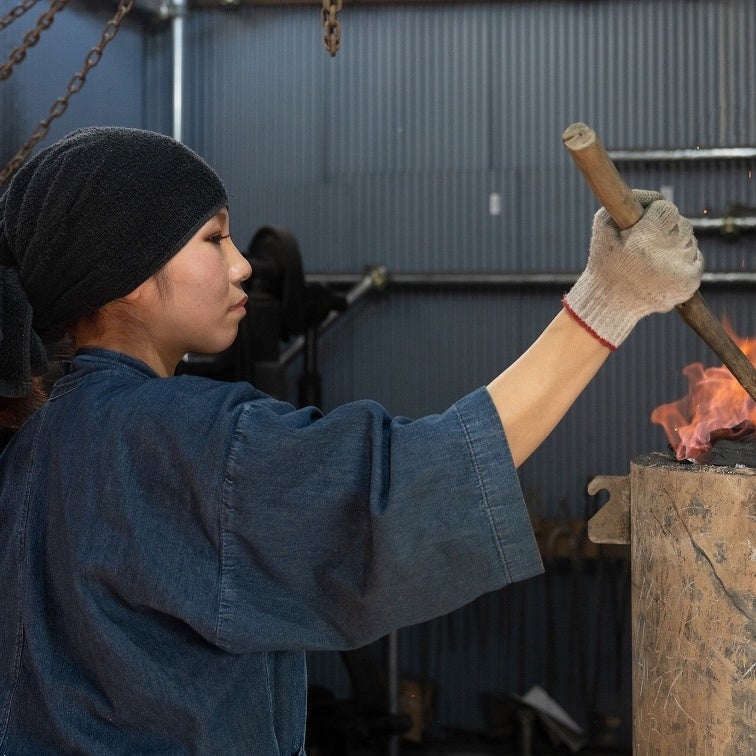 岡山市生まれ。岡山県で名匠のもと、自家製鋼と鍛刀技術の修行をしていた祐平さんとの結婚を機に上京。祐平さんの仕事を支えたいという思いからたたら製鉄を学び、自身のアイデアを加えながら「歩留まりが良く、粘り強く、刀工にとって加工しやすい高品質な玉鋼」の製作に取り組む。かつては女人禁制とされてきた鍛刀の世界で、世界でただ一人のたたら師として活動。SNSをはじめとしたデジタルプラットフォームからの発信やPR活動にも積極的に取り組んでいる。
