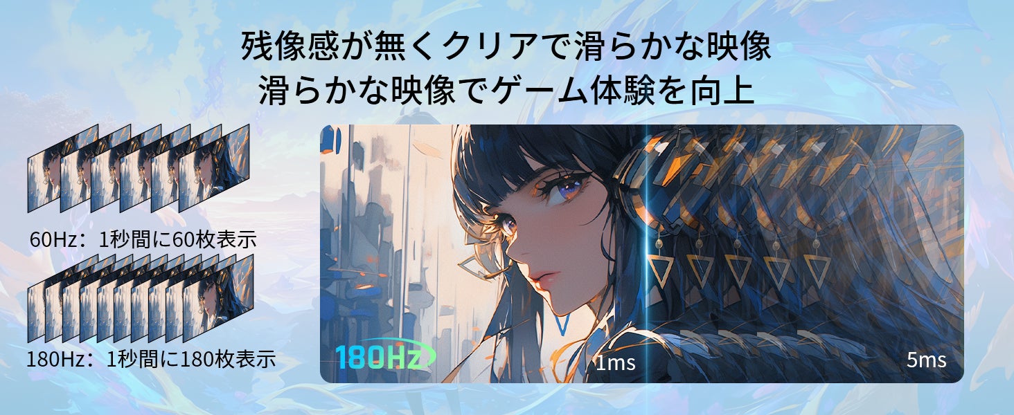 ⚡ ハイスピードなアクション - 180Hzリフレッシュレートと1msの応答速度
