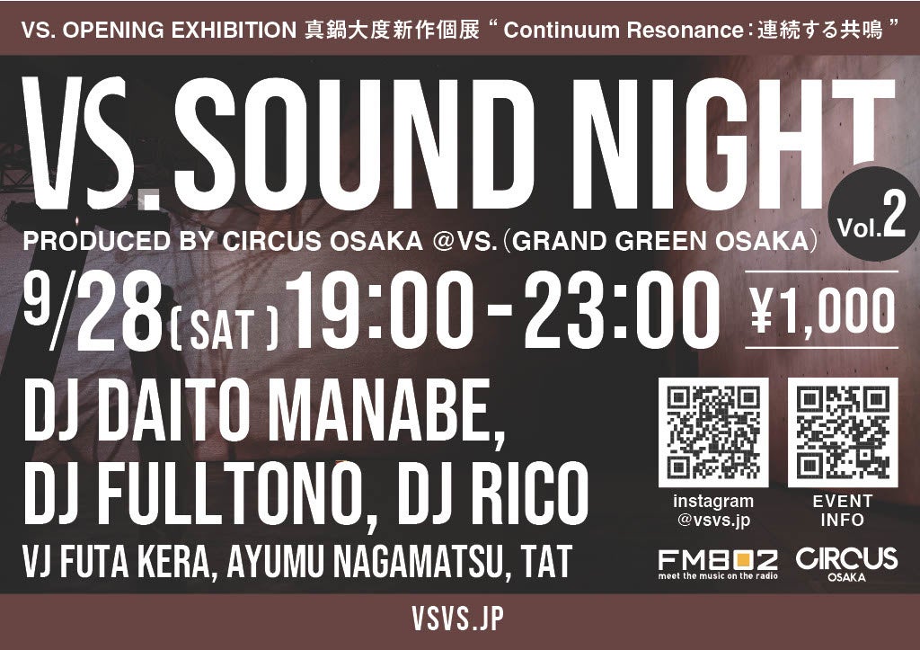 また、9月28日はゲストDJ、VJを招き、関連音楽イベントとして、「VS. SOUND NIGHT(ヴイエス・サウンドナイト)Vol.2」を開催します(19時オープンスタート・事前申込制・入場料1,000円)。