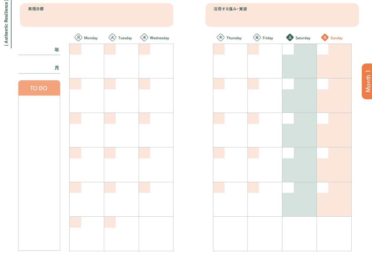 「しなやかマインド手帳 AR DIARY」には、プロジェクト代表の松岡が、レジリエンストレーナーとして10年間活動した経験をもとに創り上げた、レジリエンスをしなやかに強くする4つのステップが反映されている。