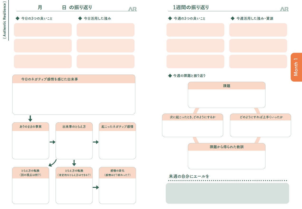 「しなやかマインド手帳 AR DIARY」は、自分の心の状態を客観的にみるメタ認知の力を高め、否定的感情を受容し、それをポジティブ感情に変換することによって柔軟な思考と行動を生み出す脳の活性化手帳と思います。