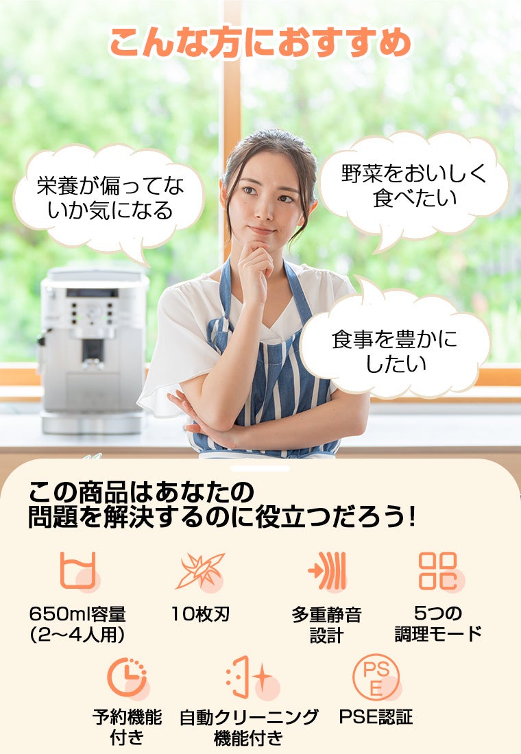 これにより、ご家庭でより多彩な飲み物や料理を簡単に楽しむことができ、健康的なライフスタイルをさらに充実させることができます。