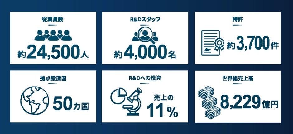 Hexagonは、世界50か国に約24,500人の従業員を擁する精密テクノロジー企業です。2000年に5億ユーロだった売上高は、2023年には54億ユーロに達し、約20年で10倍の規模のグローバルカンパニーに成長しました。イノベーションへの強いコミットメントを示す指標として、売上の15%をR&D(研究開発)に投資し、6,500人を超える専門技術者が開発を担当。3,700件以上の特許技術を保有しています。また、過去20年間で170社以上のM&Aを戦略的に実施し、先進技術の統合により市場優位性を確立してきました。