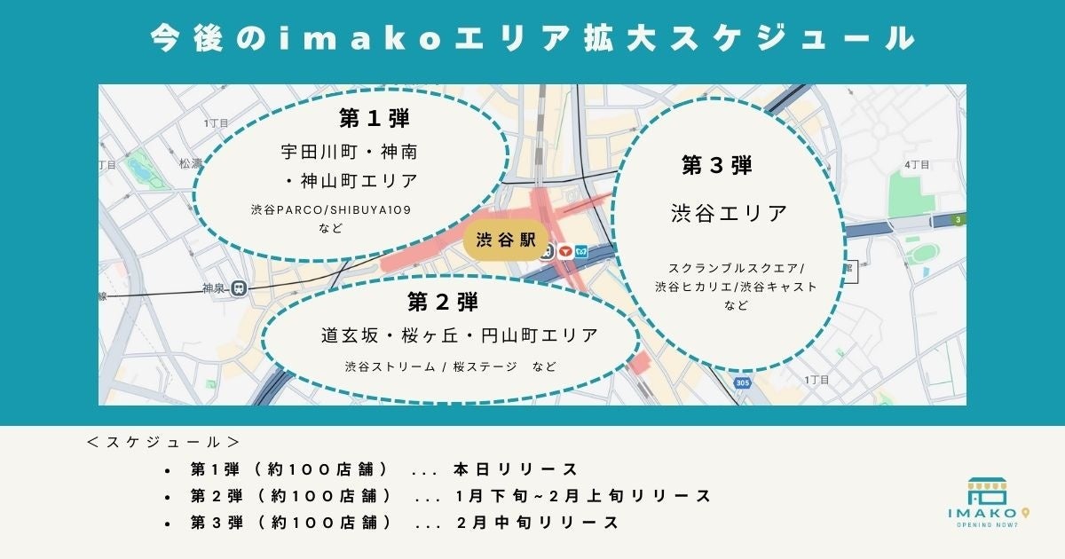今後は、第二弾として1月後半に「渋谷(道玄坂、桜ヶ丘、円山町、南平台、松濤)」エリア約100店舗、第三弾として2月中旬に「渋谷(渋谷区)」エリア約100店舗を追加する予定です。