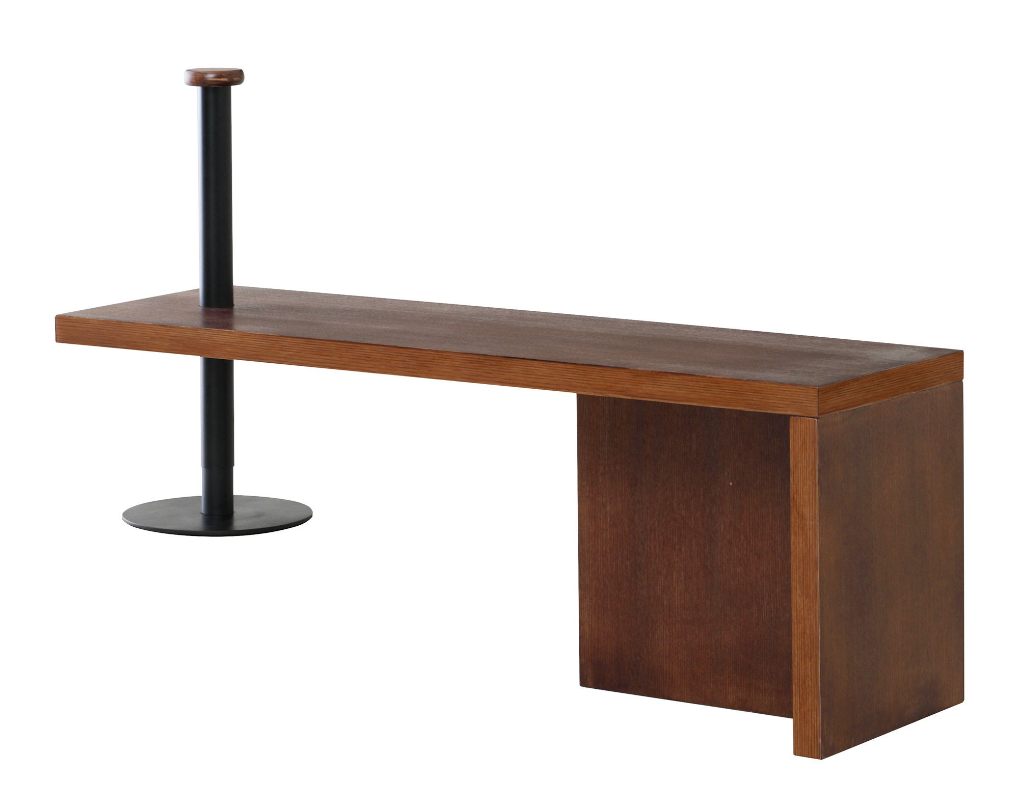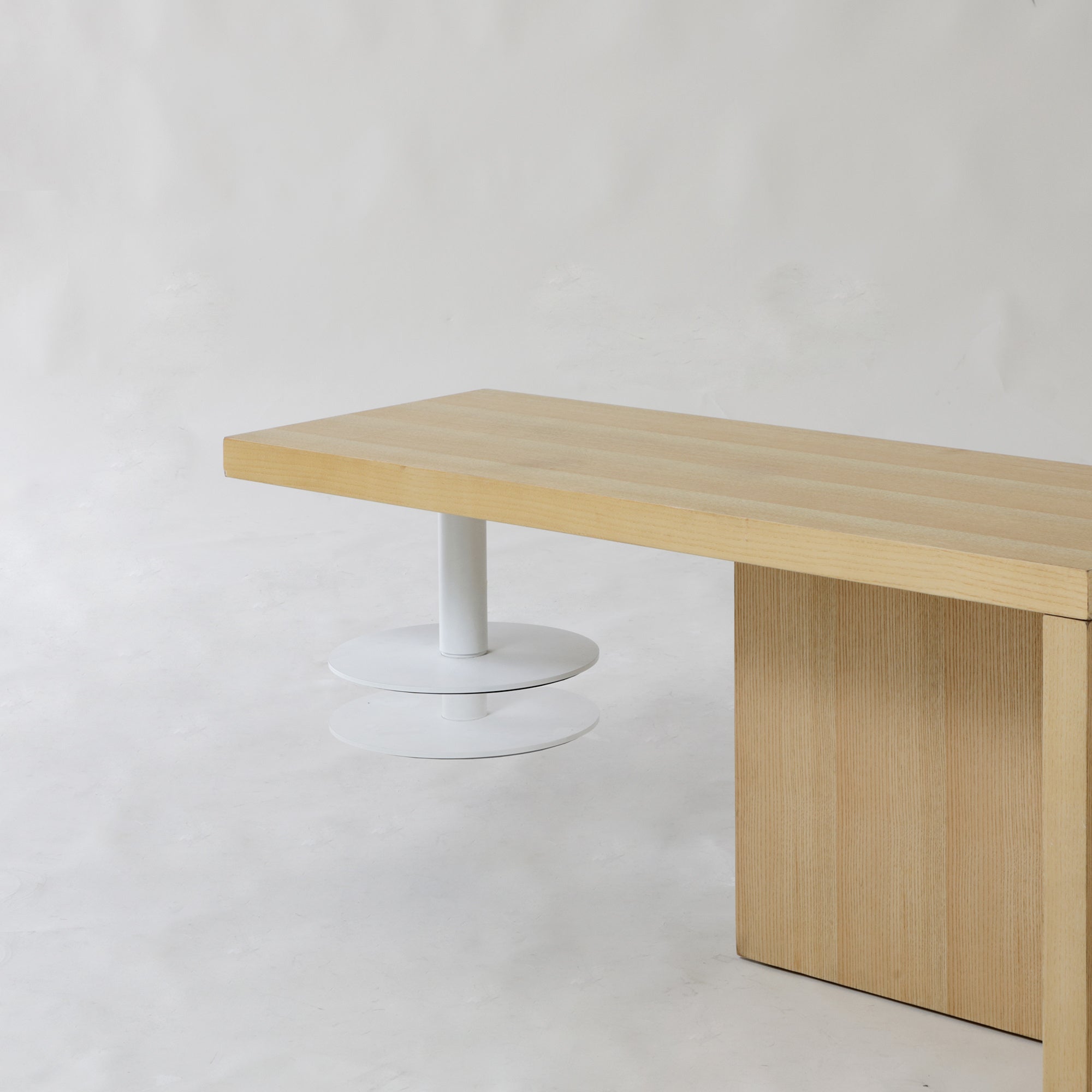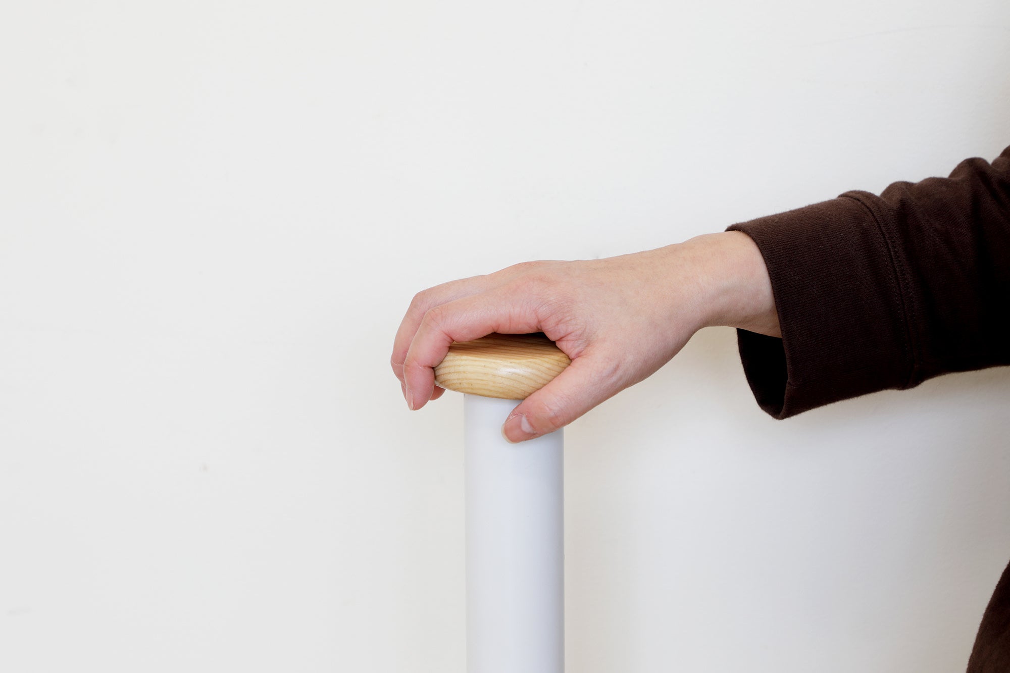 座:MDF(36mm厚)タモ突板 塗装 支柱:スチール(φ45、φ42mm)粉体塗装 ハンドル:天然木 (タモ)塗装