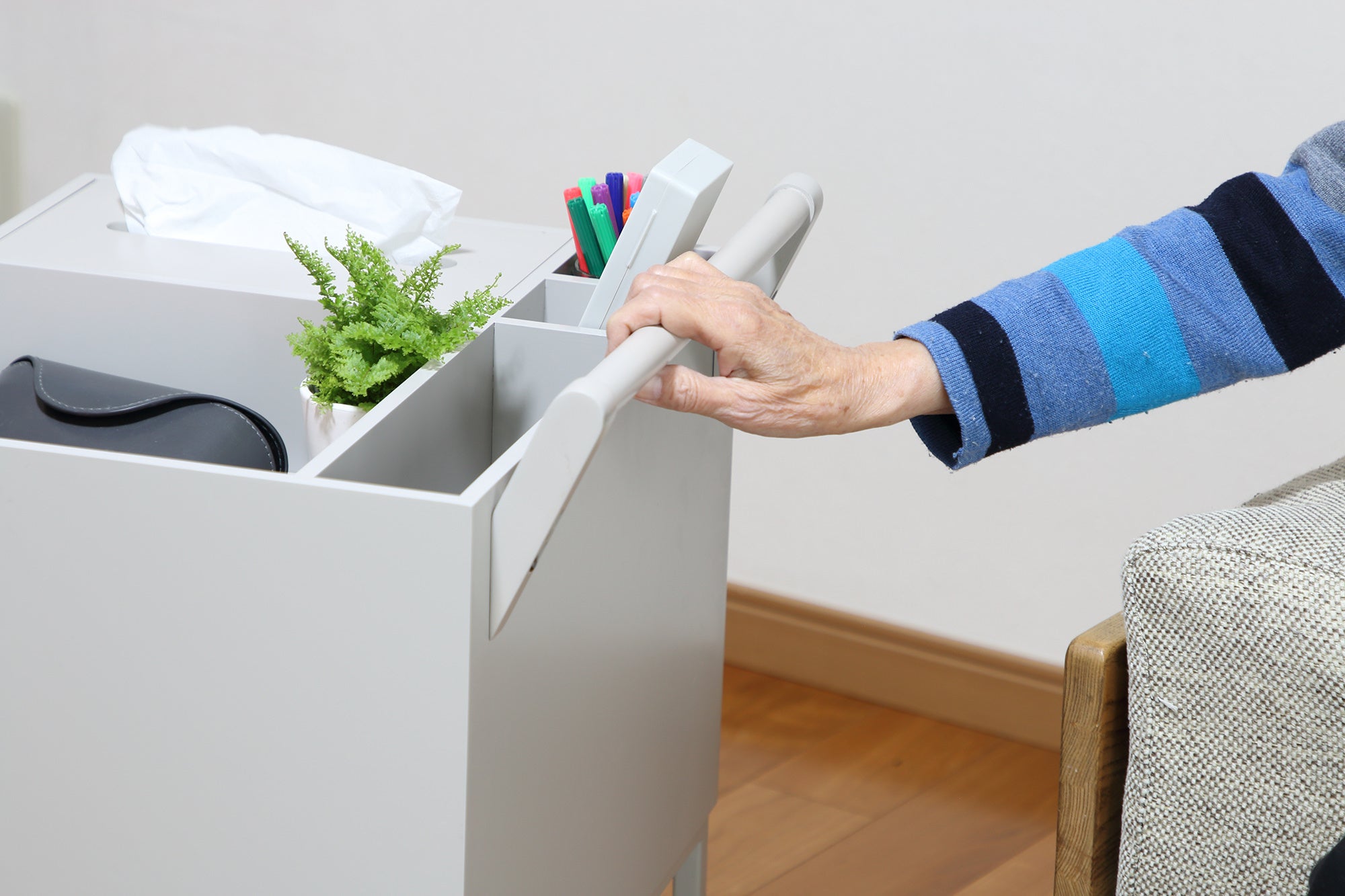 “忘れ物防止ワゴン”は、必要なものをいつも手元に置ける安心感と、視覚的にも喜ばれる美しいデザインを兼ね備えたワゴンです。