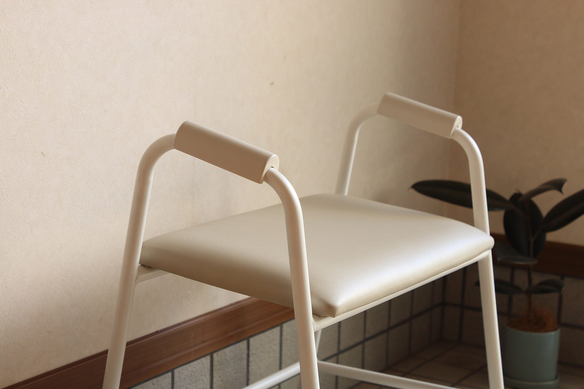 そこでシンプルかつ美しいデザインに傾斜のある座面を備えた玄関スツール“立ち上がりサポート玄関スツール”が生まれました。