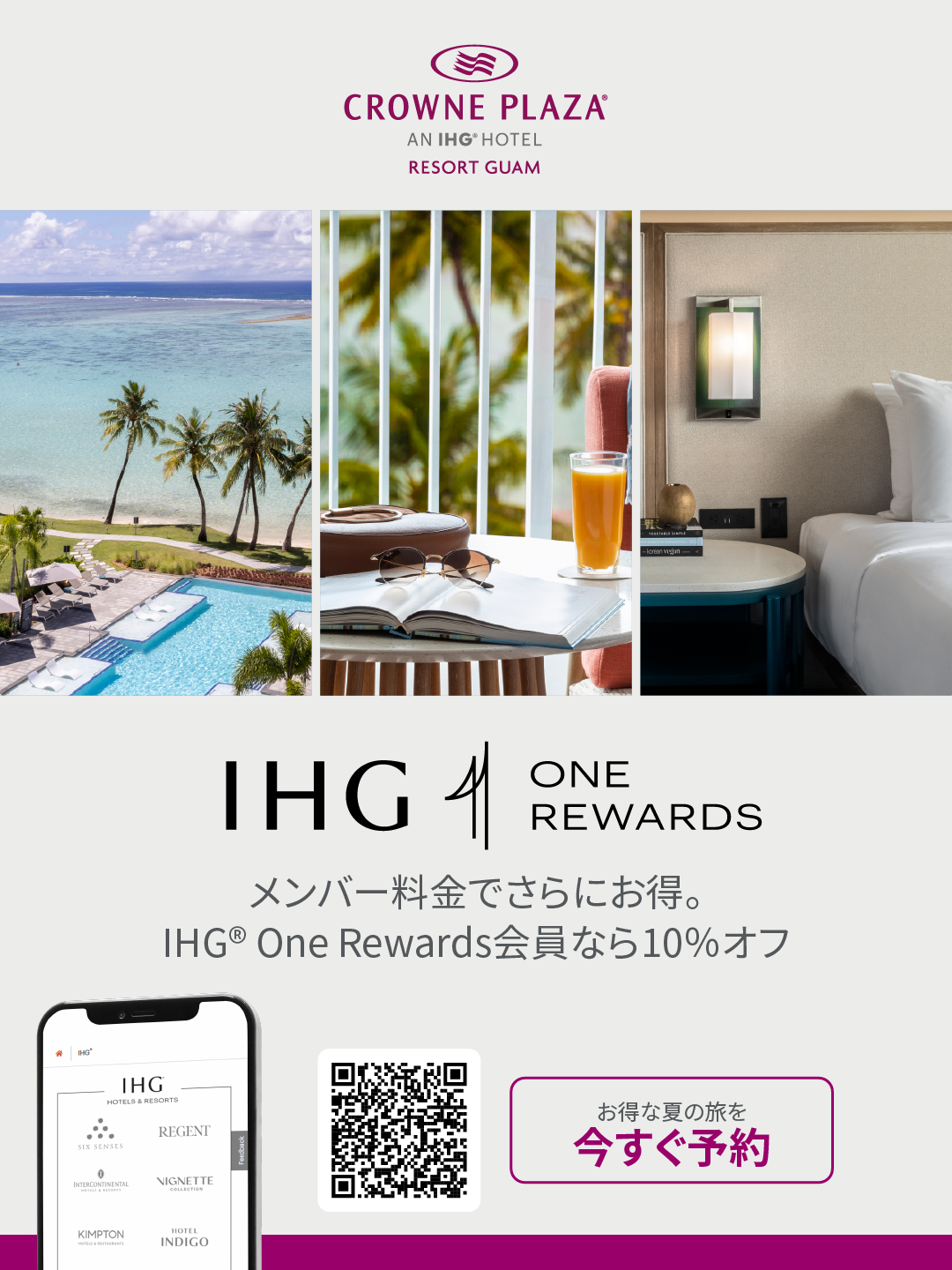 日本から一番近い楽園、クラウンプラザリゾートグアム・サイパンIHGホテルズ&リゾーツ会員限定10%オフ