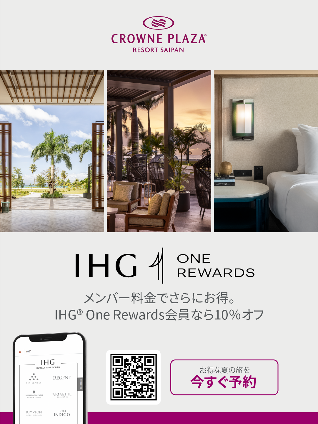クラウンプラザリゾートグアム、およびクラウンプラザリゾートサイパン(総支配人:秋間友)は、2025年12月31日(水)までの期間限定で、IHGワンリワーズからの予約で宿泊料金が10%オフになるお得なキャンペーンを実施中です。夏休み期間も予約可能な本キャンペーンは、レイトチェックアウトや無料インターネットをはじめとする、IHGワンリワーズ会員限定の特典も利用できる、今だけのお得なチャンスです。