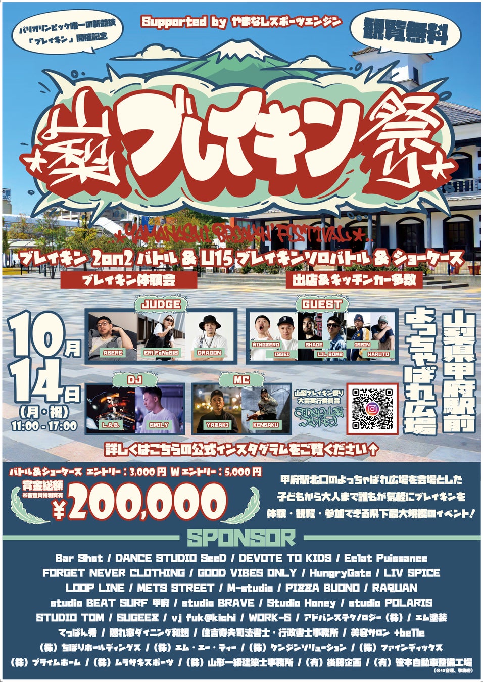 世界レベルのゲストを招いて山梨県甲府駅前で広げられる本格的なブライキンバトルイベント!!