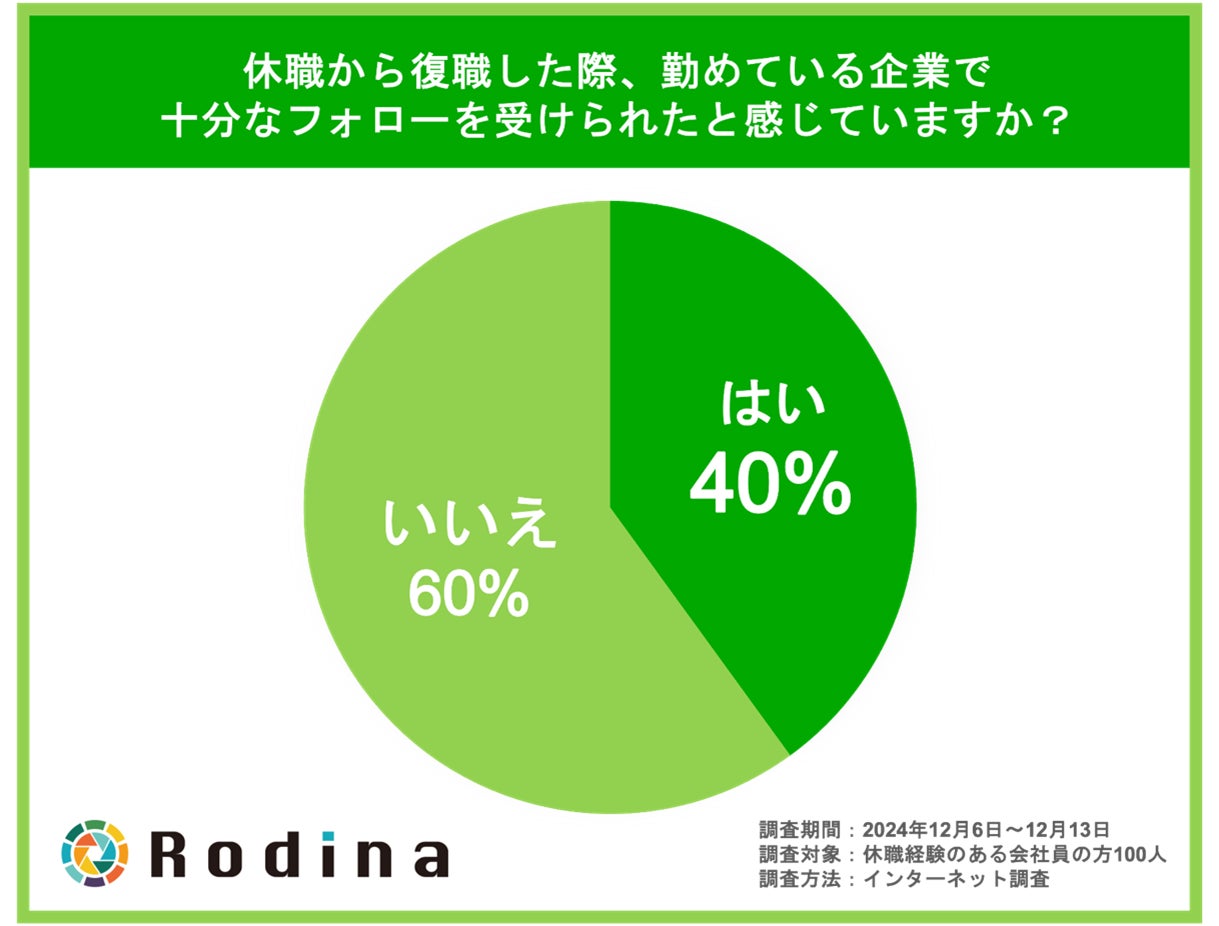 休職から復職した際、十分なフォローを受けられたと回答した方は40%に留まる結果に