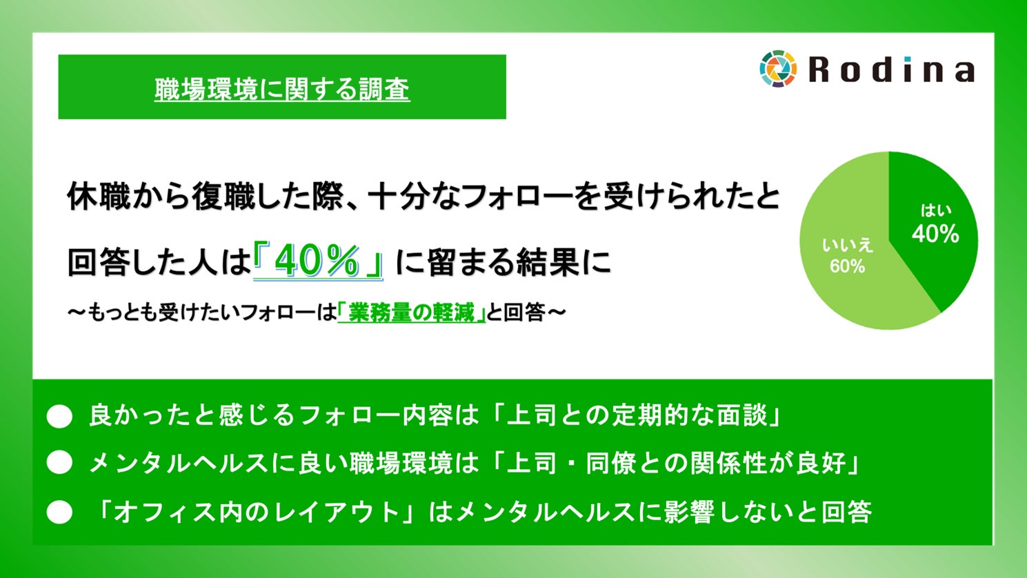 〜株式会社Rodina、職場環境に関する調査を実施〜