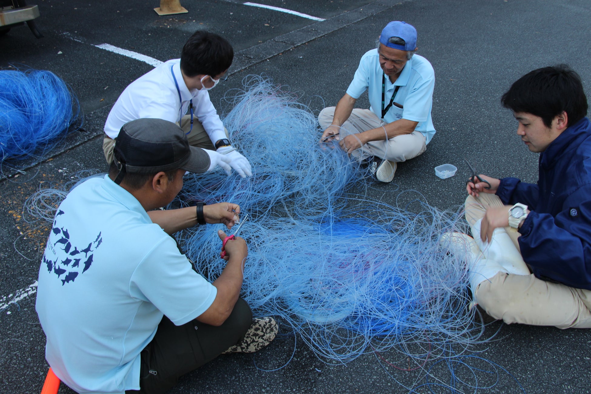 今回は3連休最終日ということもあり、朝からたくさんの方にご参加いただきました。団体での参加も多く、前回よりたくさんの網を選別することができました。