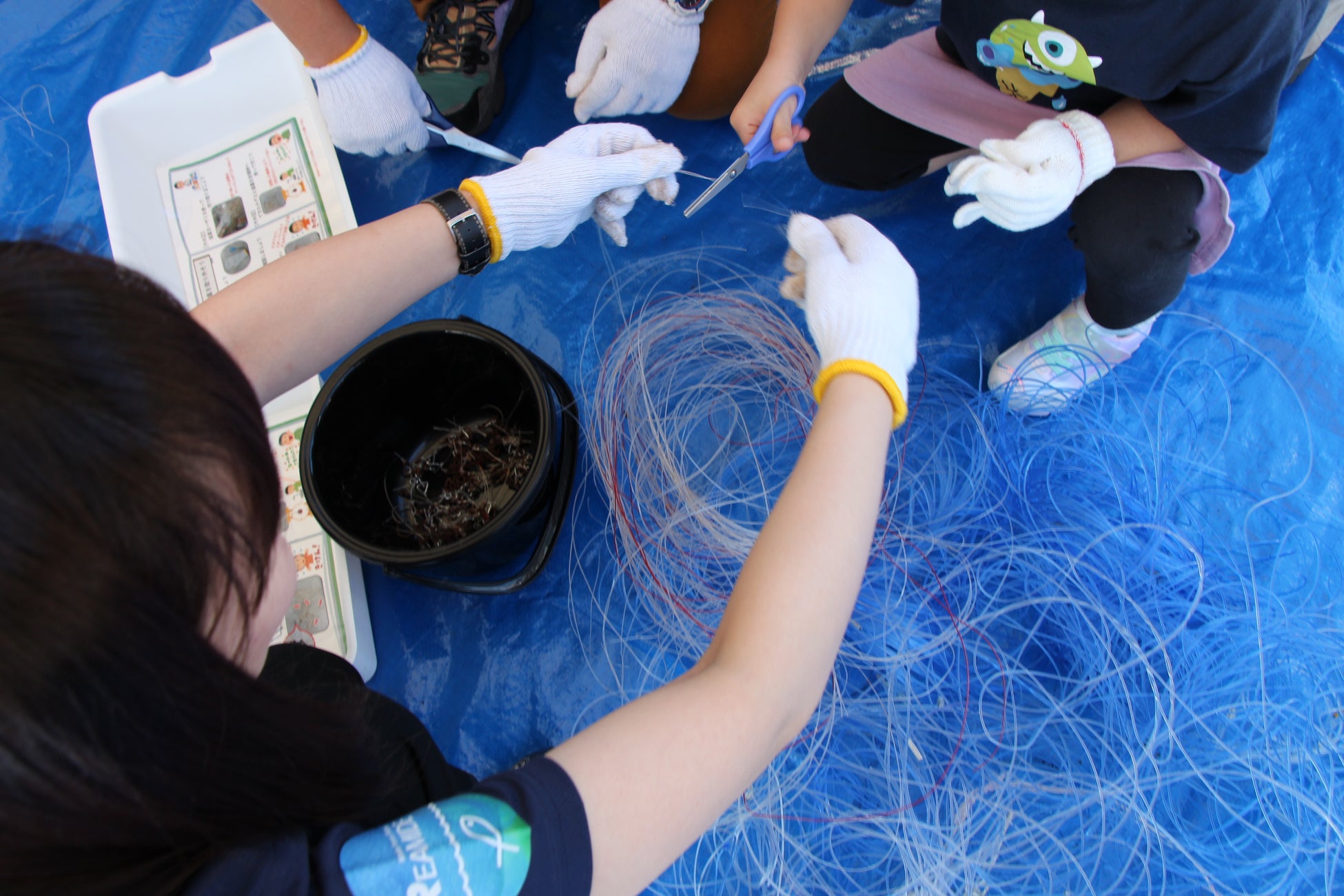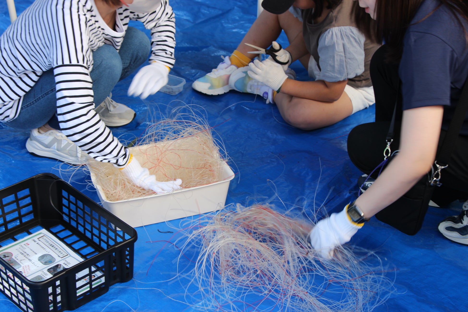 リファインバース株式会社(本社:東京都千代田区/代表取締役社長:越智晶)は、下田海中水族館で二回目となる「廃漁網の回収とリサイクルプロジェクト」を11月4日(月・祝)に開催しました。今回は、53人の来場者の皆様にご参加いただき、キンメダイ漁の網を中心に、マグロ漁の網の選別を実施しました。回収された廃漁網は、当社の自社工場にて高品質リサイクルナイロンペレット 「REAMIDEⓇ」(リアミド)に生まれ変わります。