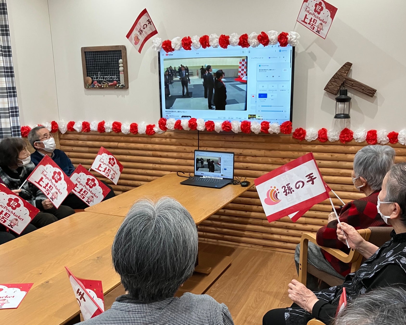 上場当日は、上場セレモニーの様子をライブ配信し、拠点を越えて社員やご利用者様が視聴・参加しました。配信中は、ご利用者様より現場スタッフへの労いの言葉やお祝いのメッセージが寄せられ、拍手が起こるなど、会社全体で節目を分かち合う一日となりました。