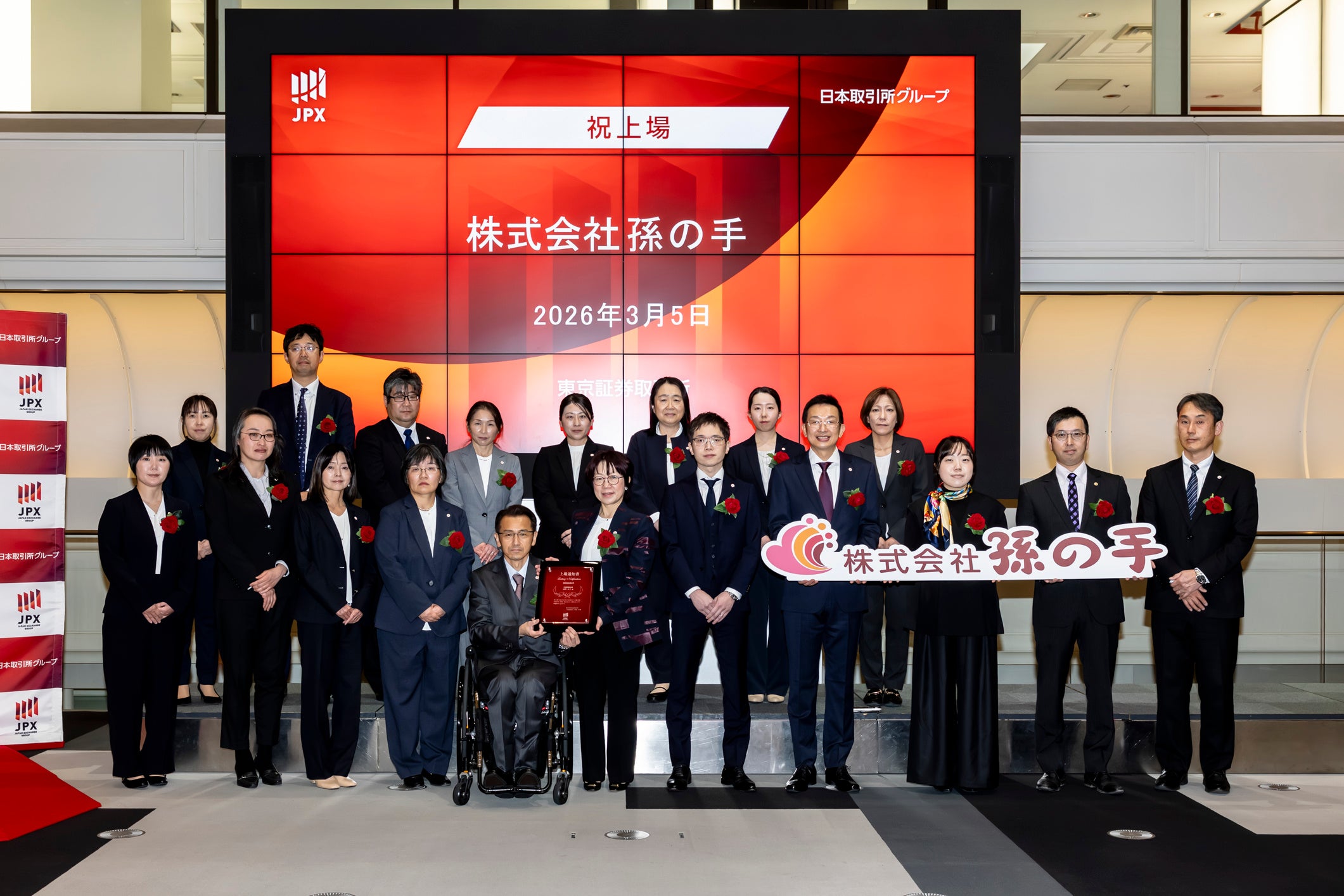 株式会社孫の手(本社:群馬県太田市、代表取締役社長:浦野 幸子、以下「当社」)は、2026年3月5日(木)、株式会社東京証券取引所(本社:東京都中央区、代表取締役社長:岩永 守幸)が運営するTOKYO PRO Marketへ上場いたしましたことをお知らせいたします。