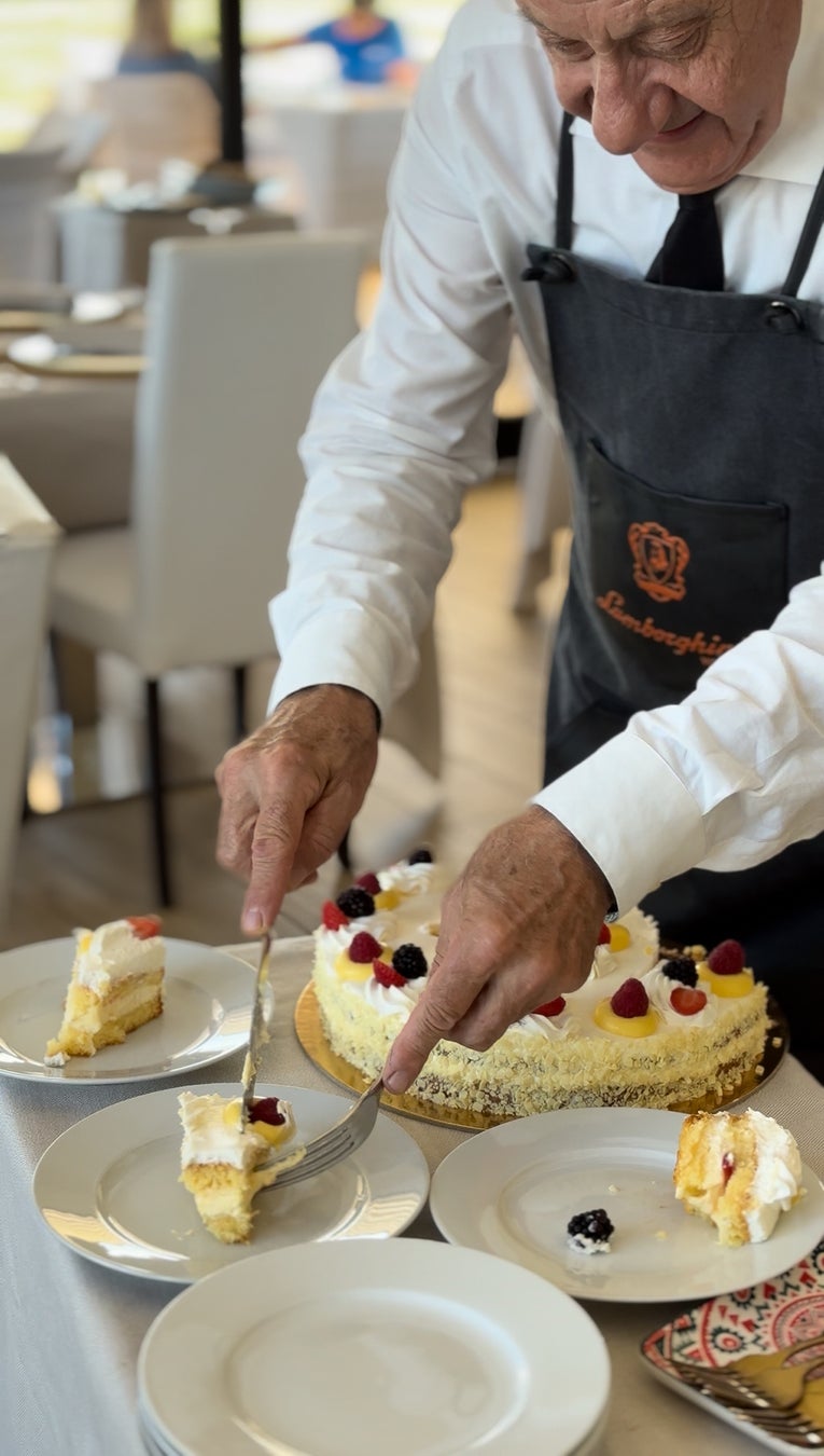 試合後には、イタリア・ウンブリア州にあるTenuta Lamborghiniのワイナリーにて、本社代表とブランド価値の向上やブランド管理・戦略に関するミーティングを重ねました。また同席した関係者とともに、ワイナリー併設のレストランにて本社代表であるシルビオ氏の誕生日を祝いました。