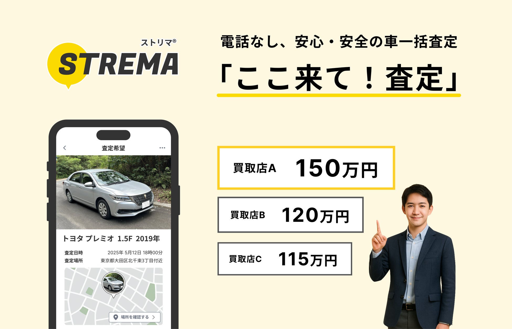 ストリマ、アプリを大幅アップデート! 電話不要で安心・安全の中古車一括査定「ここ来て!査定」機能をリリース