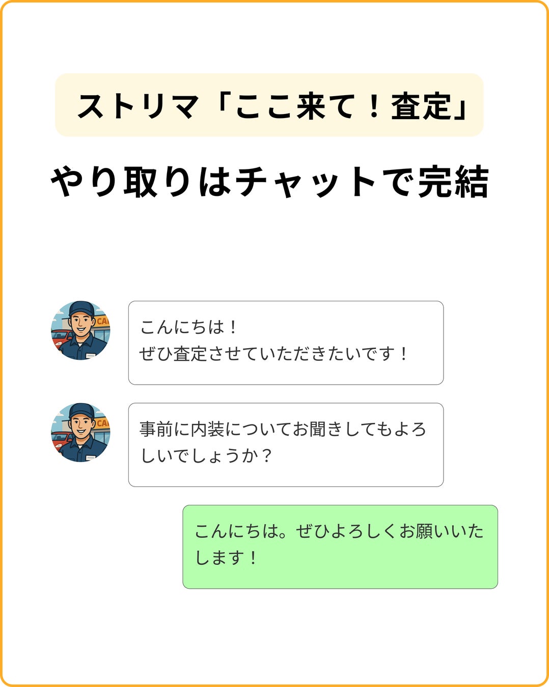 ストリマの「ここ来て!査定」は、車を売りたいユーザーだけでなく、買取店にとってもメリットのある仕組みです。