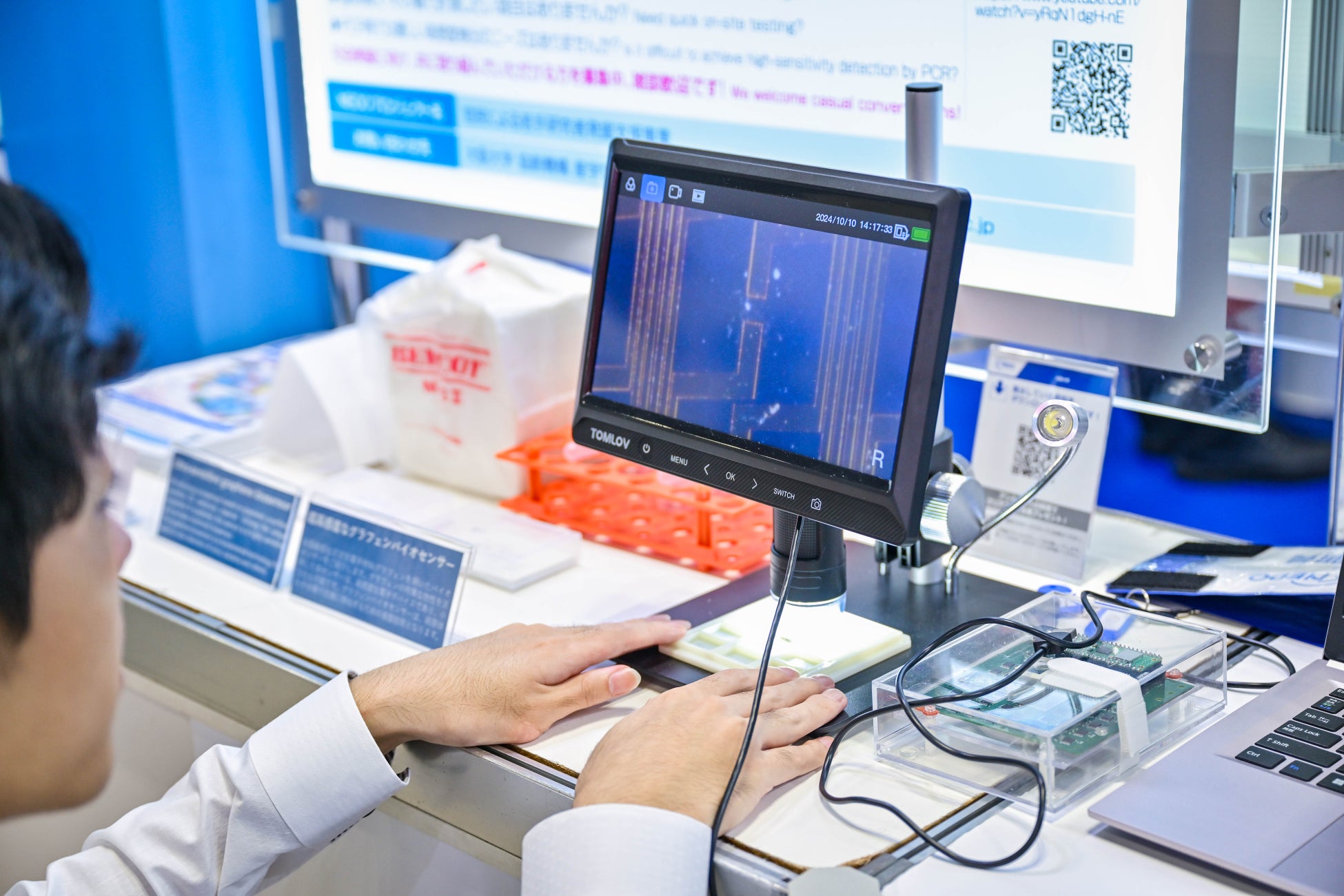 ウイルスなどを迅速に検出する基盤技術となるバイオセンサーや、触覚によるバイオフィードバックを行うウェアラブルデバイス、VR技術による分子シミュレーション体験など、多様な成果を実感いただける展示を行いました。