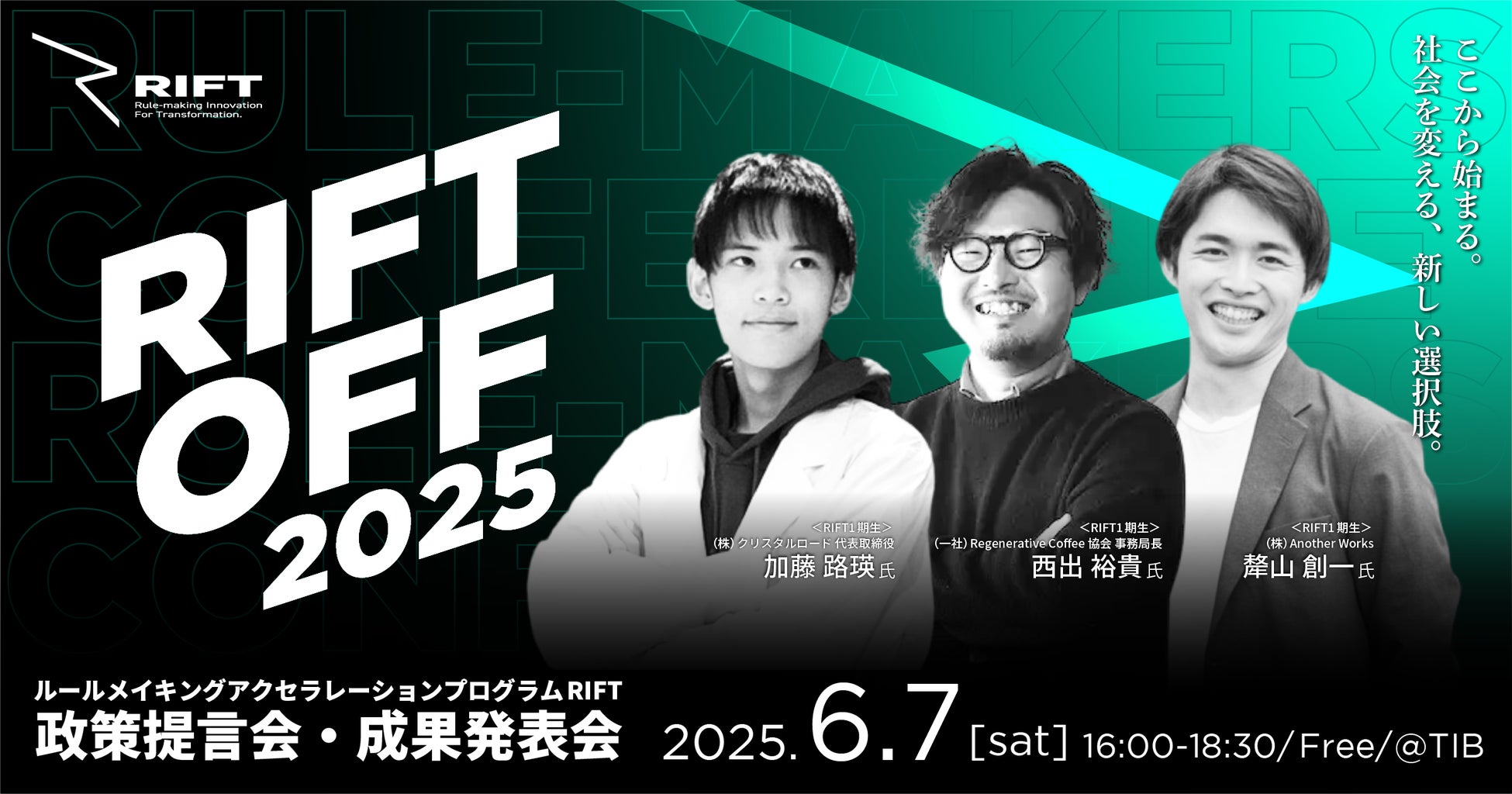 【6/7(土)16時】ルールメイキング特化型アクセラレーションプログラムRIFT 成果発表会・政策提言会『RIFT OFF』を開催。[先着70名/参加無料]