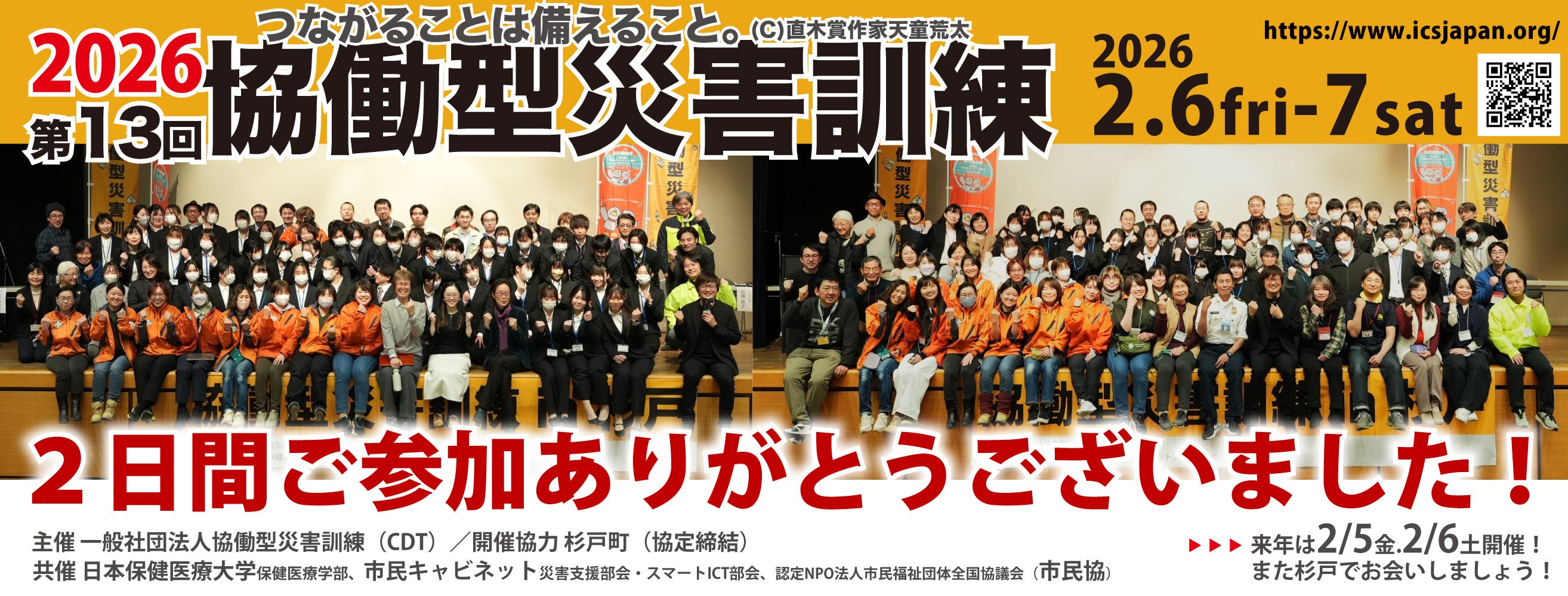 一般社団法人協働型災害訓練は、2月6日(金)から7日(土)の日程で、第13回協働型災害訓練in杉戸「防災DX2.0〜コンセプトフリーな世界を考える〜」を開催しました。