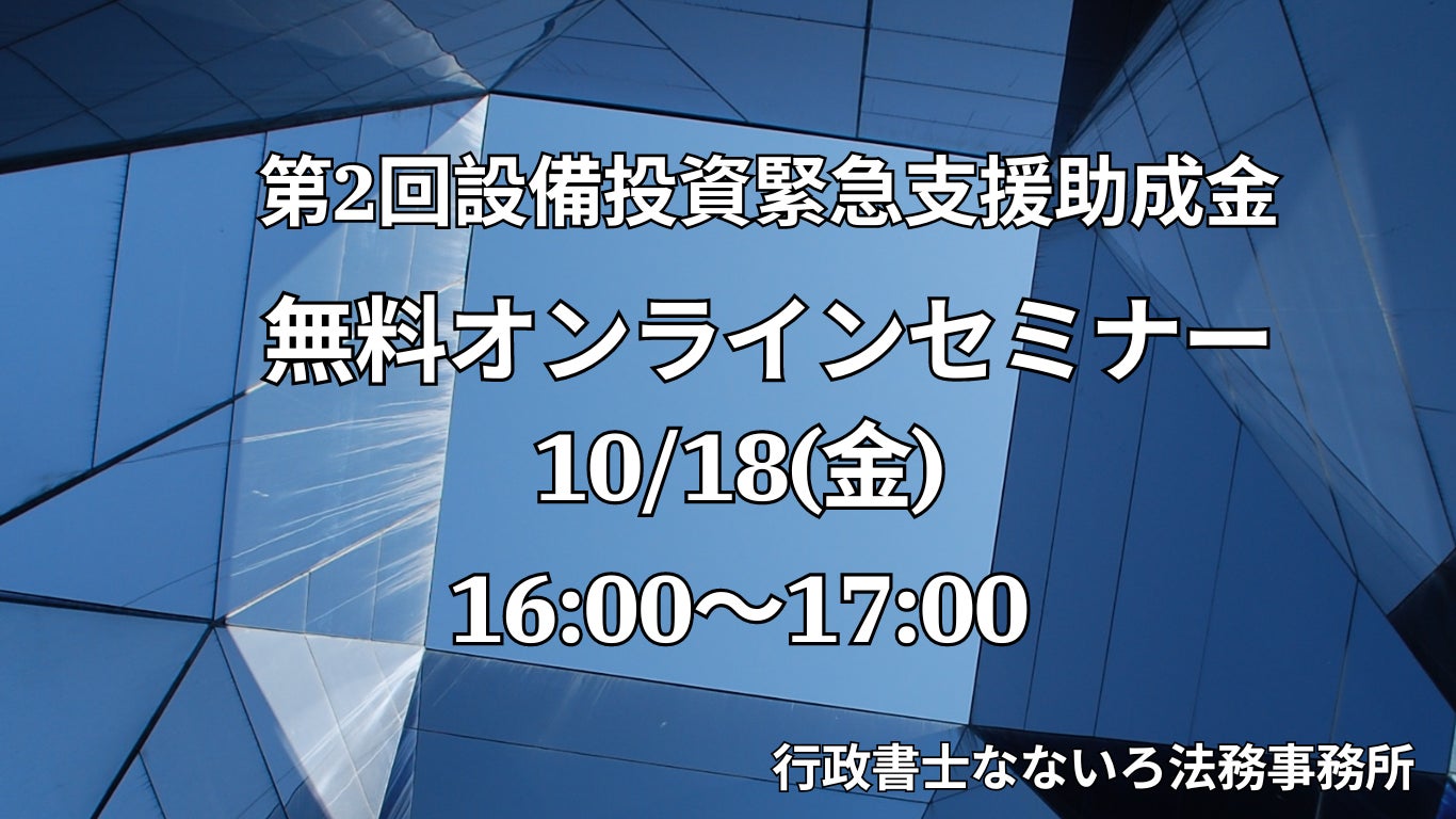 「第2回設備投資緊急支援助成金」についてのオンライン説明会を開催いたします。