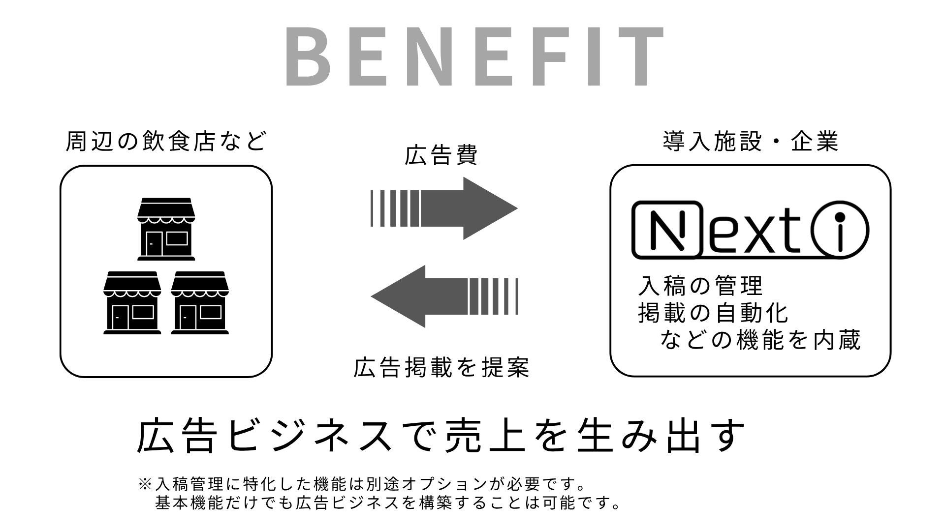 地域の店舗やイベント情報を広告として掲載し、地域経済の活性化に貢献。広告費を施設の運営費に充当することも考えられます。