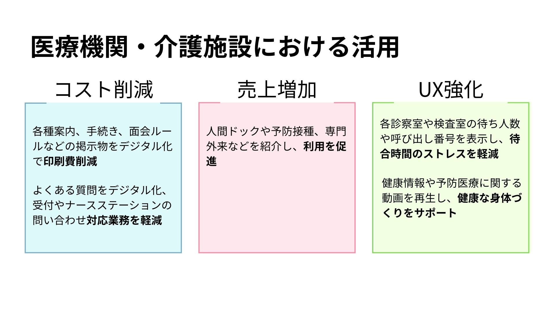 UX強化(患者・入居者の不安解消):