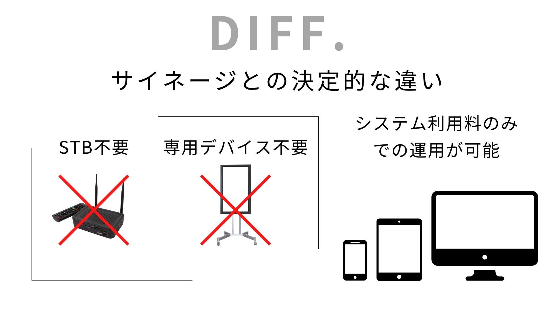 従来は高価な専用モニターとSTBの購入が必須で、高額な初期費用が発生していました。