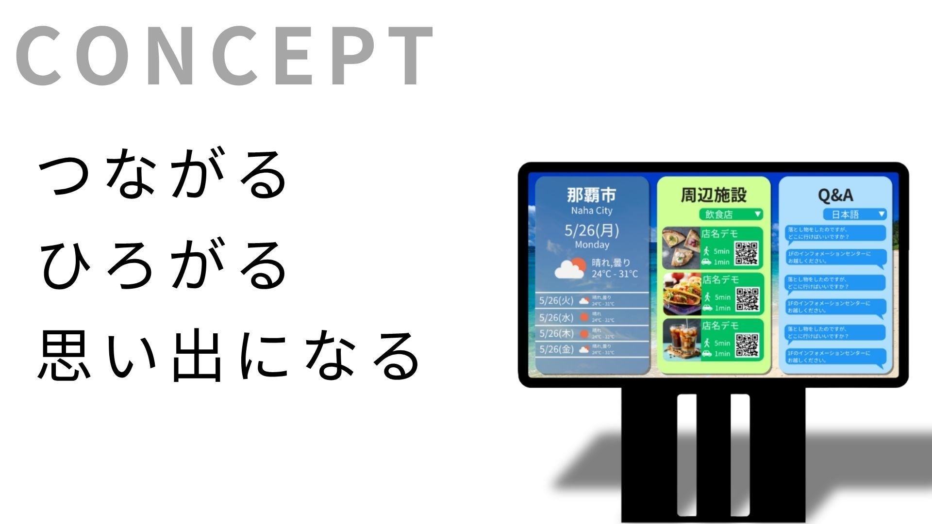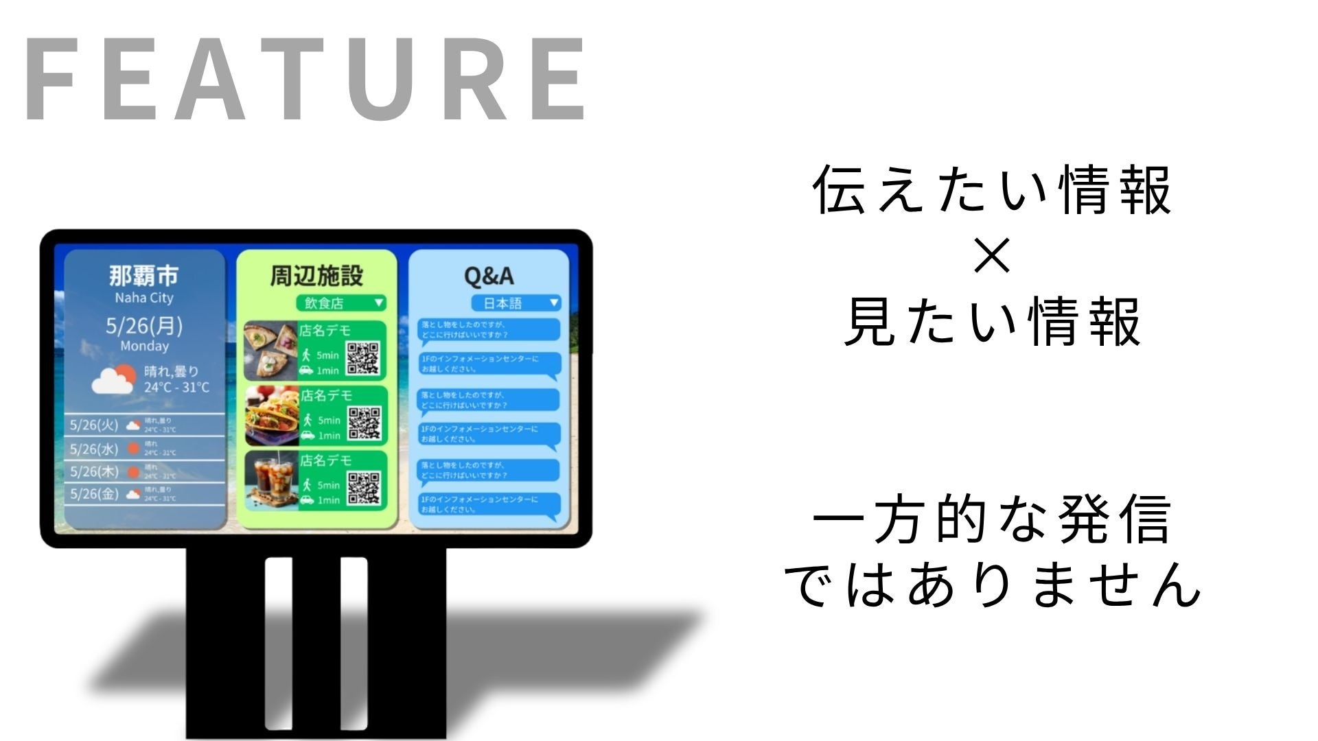 「スマートインフォメーション」は、利用者が求める情報に自らアクセスできる双方向の体験を提供する、次世代のコミュニケーション・プラットフォームです。