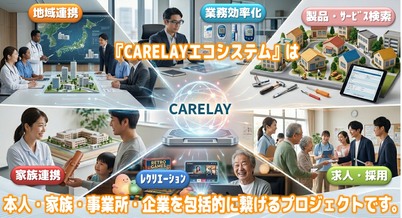 今回の「CARELAYカタログ」で終わらず、今後も介護・医療・福祉業界が安価で簡単に連携できる「CARELAYエコシステム」を構築していきます。