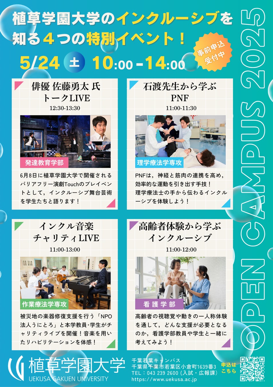 5月24日(土)のオープンキャンパスは、植草学園大学のインクルーシブを知る4つの特別イベントを開催します。