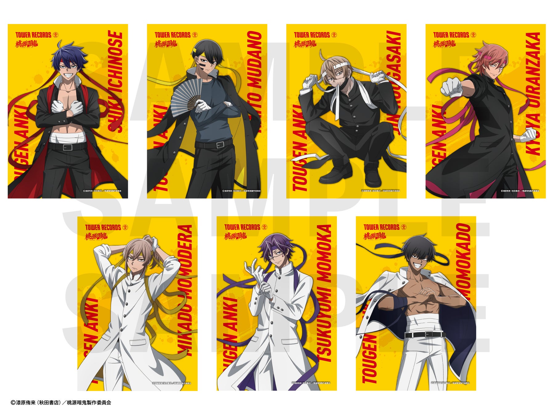 「TVアニメ『桃源暗鬼』POP UP SHOP in TOWER RECORDS」にて2,200円(税込)をご購入毎に、限定オリジナルポストカードをランダムで1枚プレゼント!