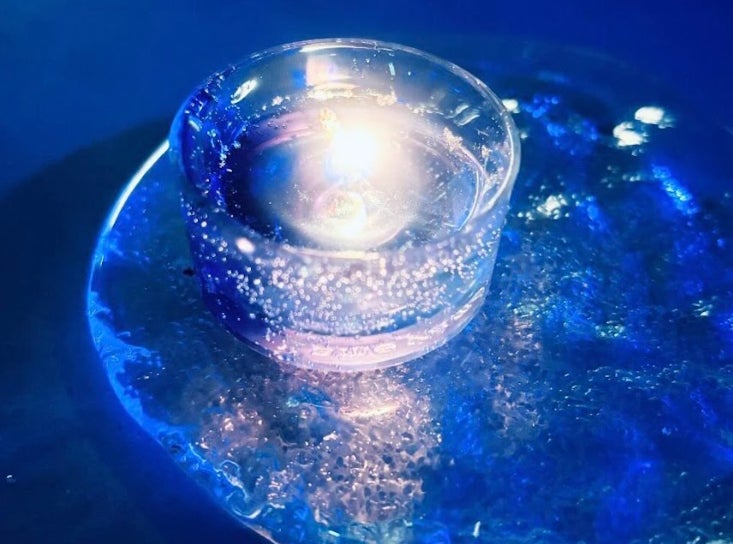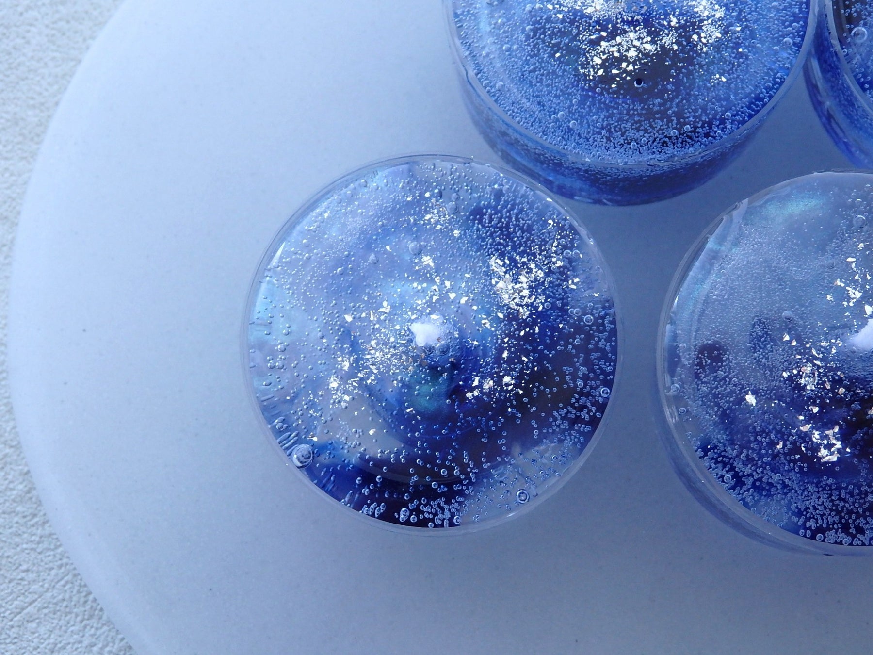 このキャンドルは、 青く澄んだ海に揺蕩う海月のような灯り をイメージし、tayutaの幻想的な空間を小さく表現した特別な作品です。