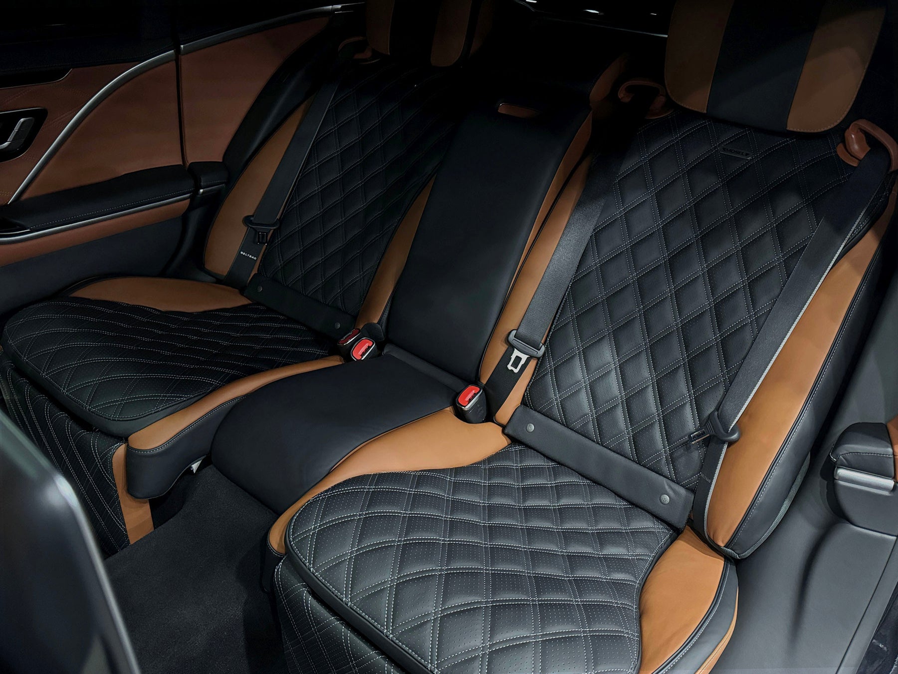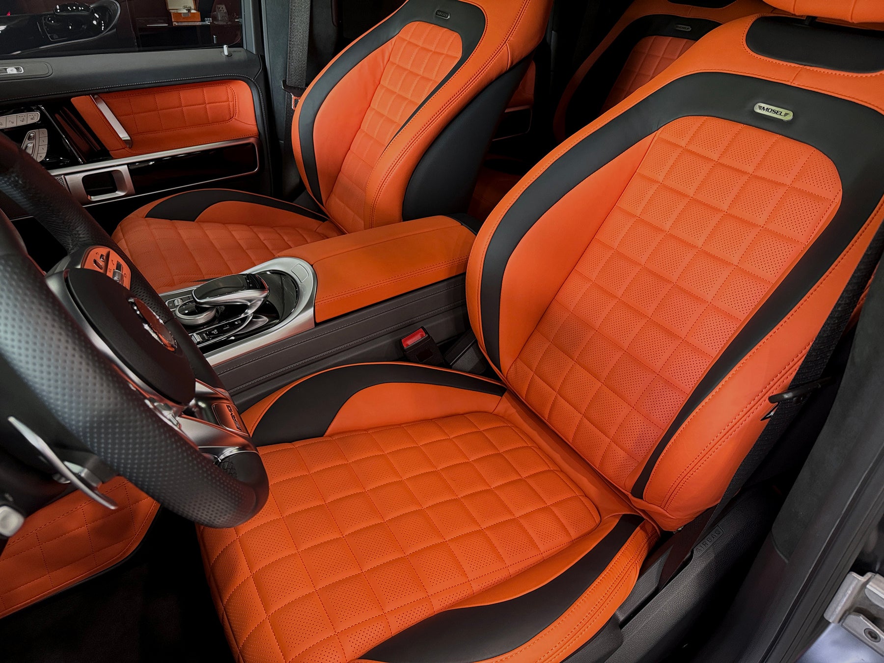 鮮やかな色彩がすべての人々を魅了する《MOSELカラメルレザー》は、大人の遊び心と重厚感を絶妙に融合させたカラメルカラーのレザーシートです。厚みのある高品質な本革は、極上の座り心地を誇り、さらにパネル周りも鮮やかなカラーで統一されており、所有者に唯一無二の満足感をもたらします。コンプリートカーならではの高級感と一体感をお楽しみいただけます。