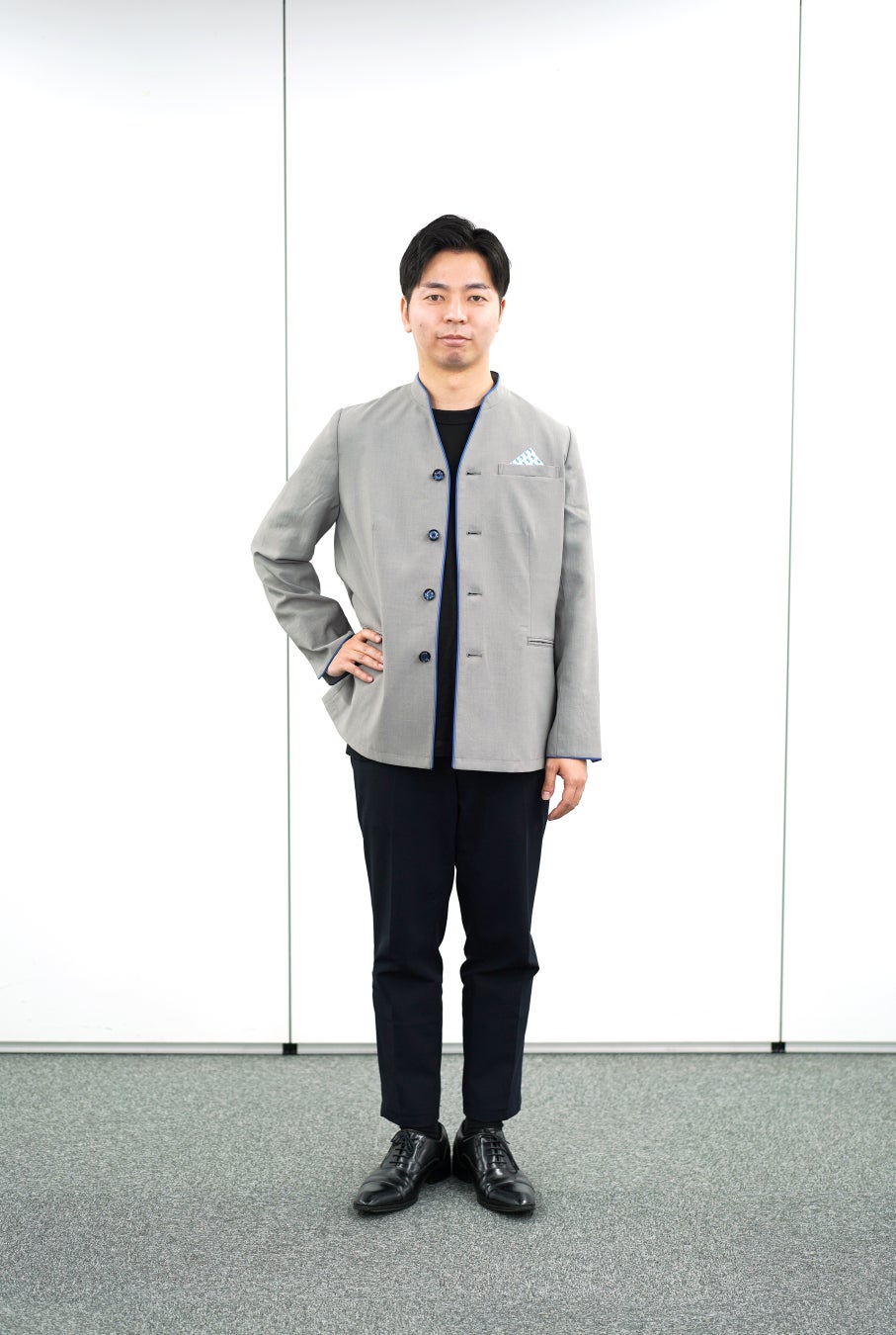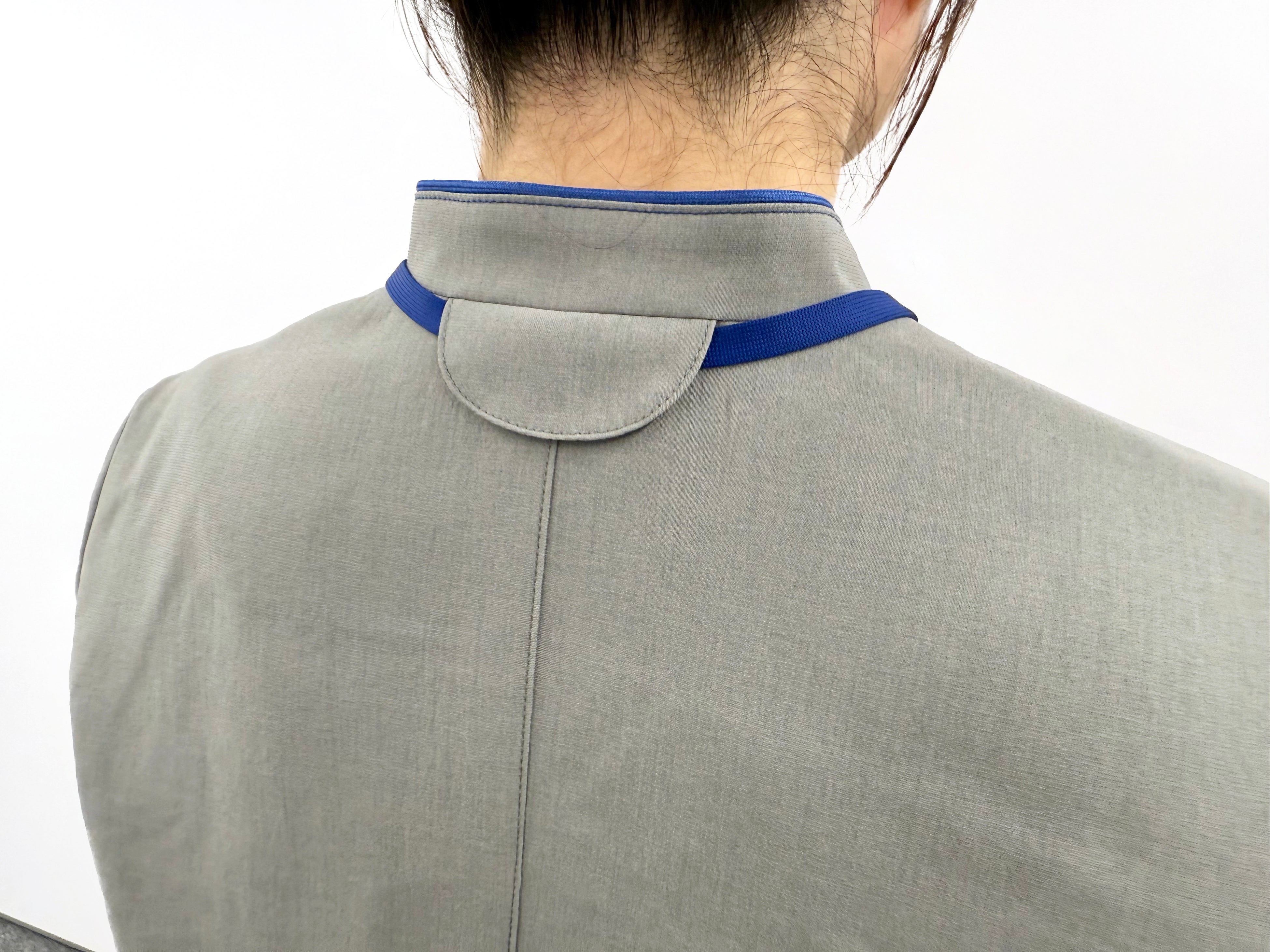 ジャケットは羽織るだけのシンプルなデザインで、着脱がスムーズ。着替え時間を短縮。