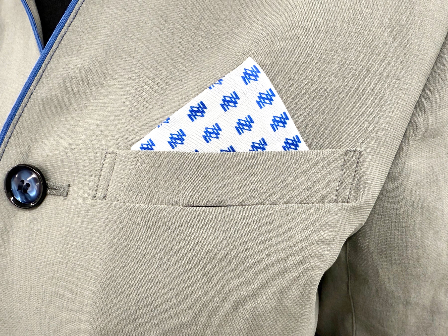 デザインのアクセントとして、胸元にポケットチーフをあしらいました。医療従事者としての誇りを表すとともに、チームの一体感を高める役割も担っています。