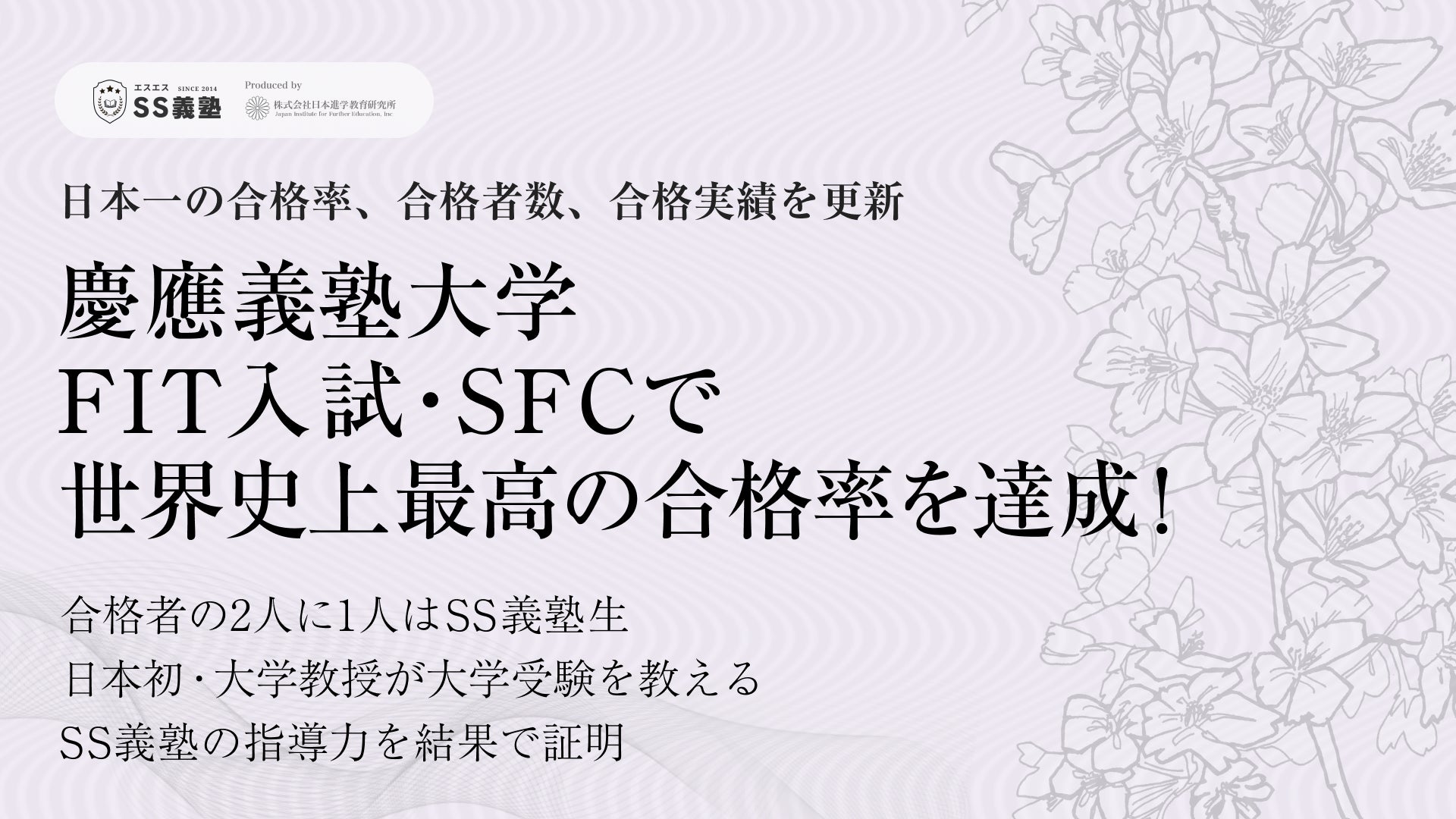 《世界記録大幅更新/ギネス記録挑戦》慶應義塾大学 FIT入試・SFCで世界史上最高の合格率を達成!(業界最大手予備校グループ傘下 SS義塾)