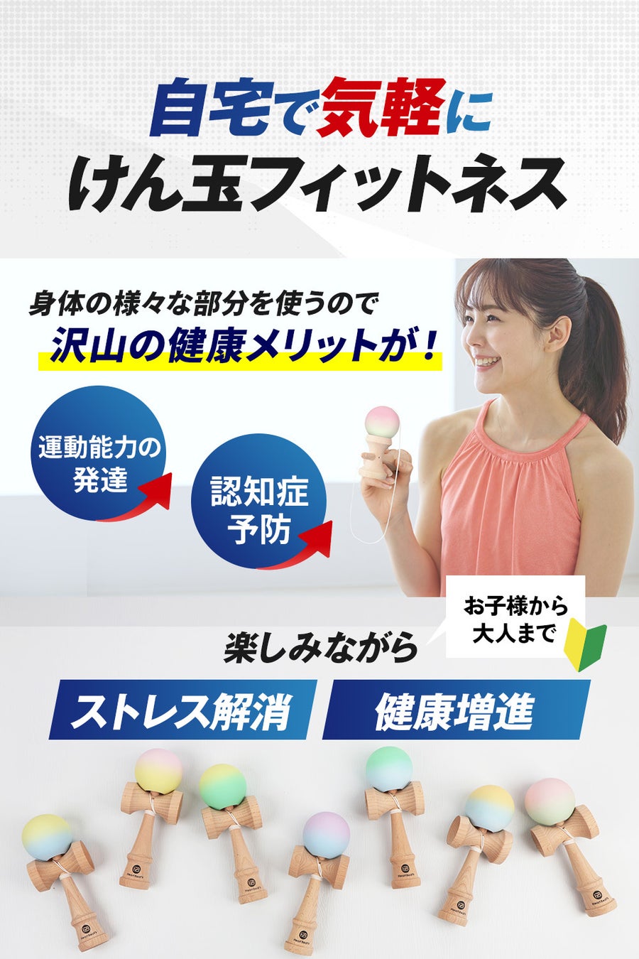 けん玉は指先や膝の運動が認知症予防やストレス解消に効果的で、認知機能や運動能力の向上が期待できる手軽なフィットネスとして注目されるアイテムです。 楽しみながらストレス解消と健康増進が図れ、心身のリフレッシュにも最適です。