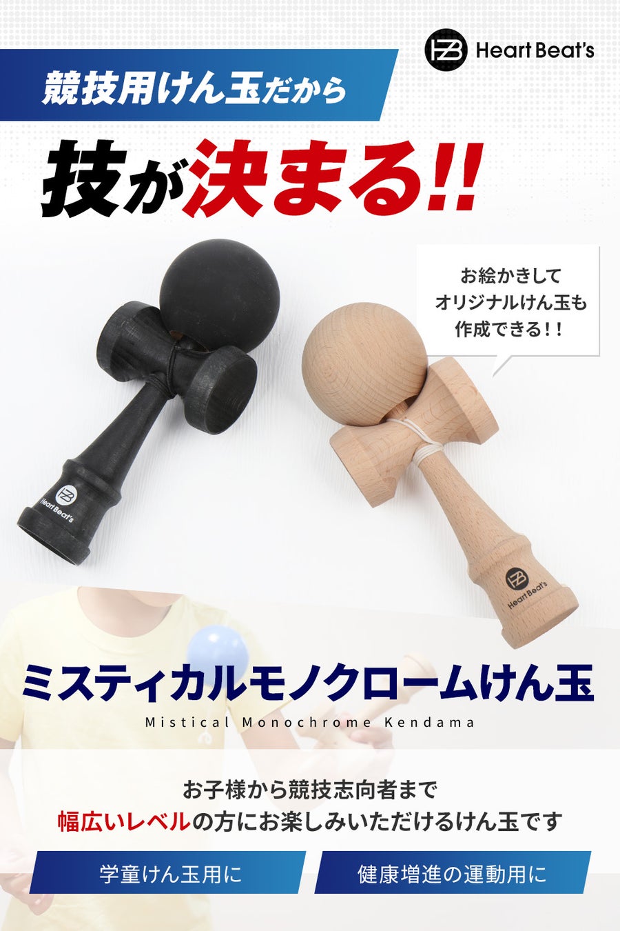 「Heart Beat's ミスティカルけん玉」は、日本けん玉協会認定品と同等のスペックを備え、技の決まりやすさを追求した高品質な競技用けん玉です。