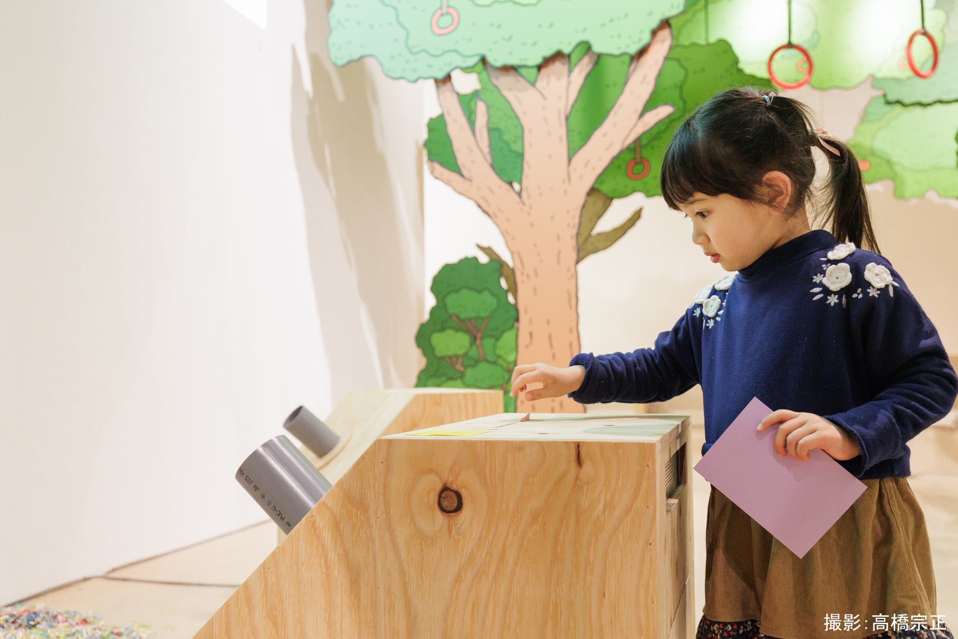 会場には、レトロな仕組みの「あなただけのおまじないづくりコンピューター」や、手をつなぐことのできる絵本の宇宙人、誰にも見せずに言葉や絵を描いてシュレッダーで粉々にするコーナーなど、楽しい展示がたくさん。「きみはいったいどこにいるんだ」が目印の箱の中には何が見えるのか、ぜひ会場でのぞいてみてください。そのほか、この会場からたっぷり増量される展覧会オリジナルグッズや東京会場限定のテーマカフェなど盛りだくさん。ぜひ、お越しください。