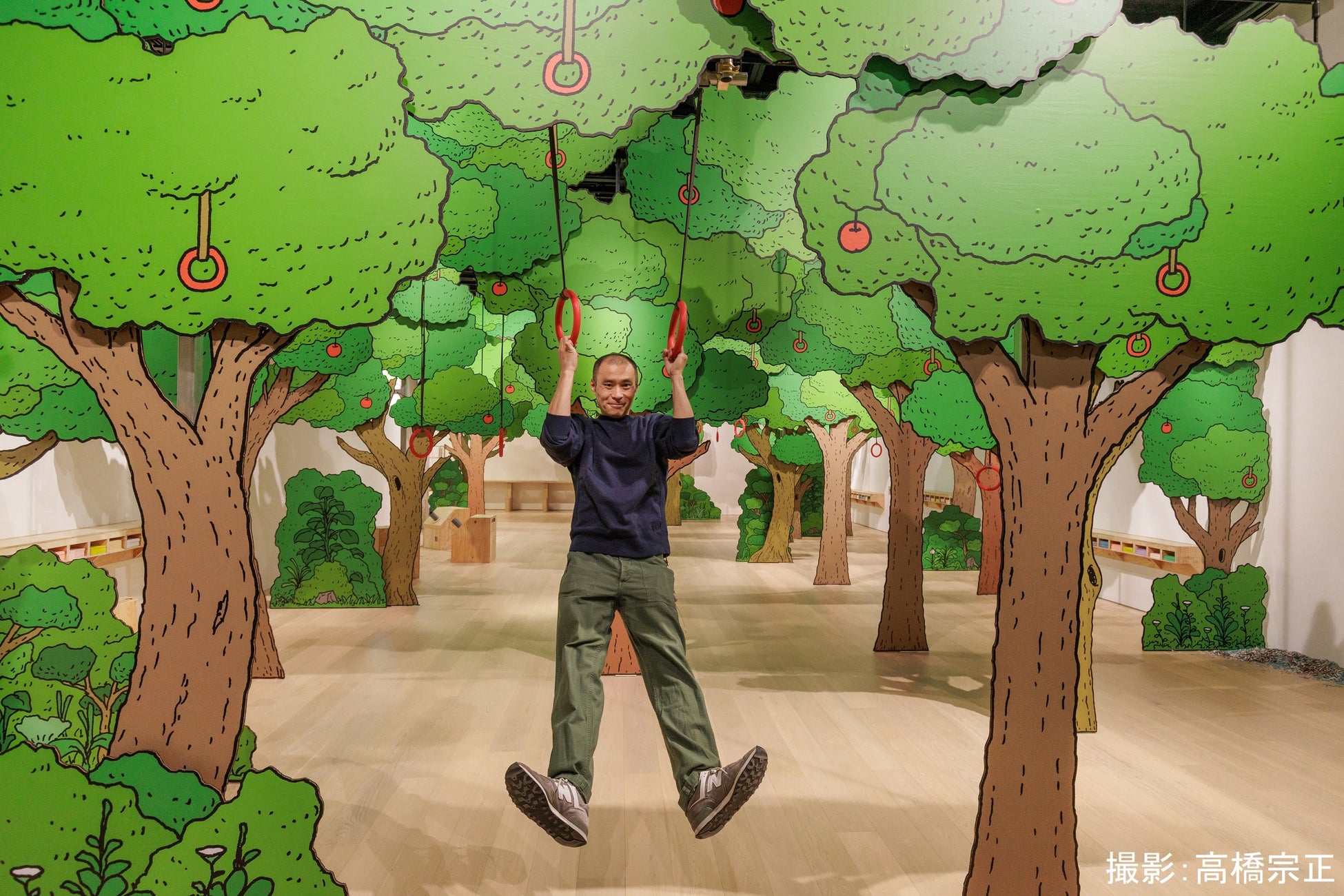 明日から開幕!「ヨシタケシンスケ展かもしれない たっぷり増量タイプ」つり輪の森で足の裏を地面から離してみよう!