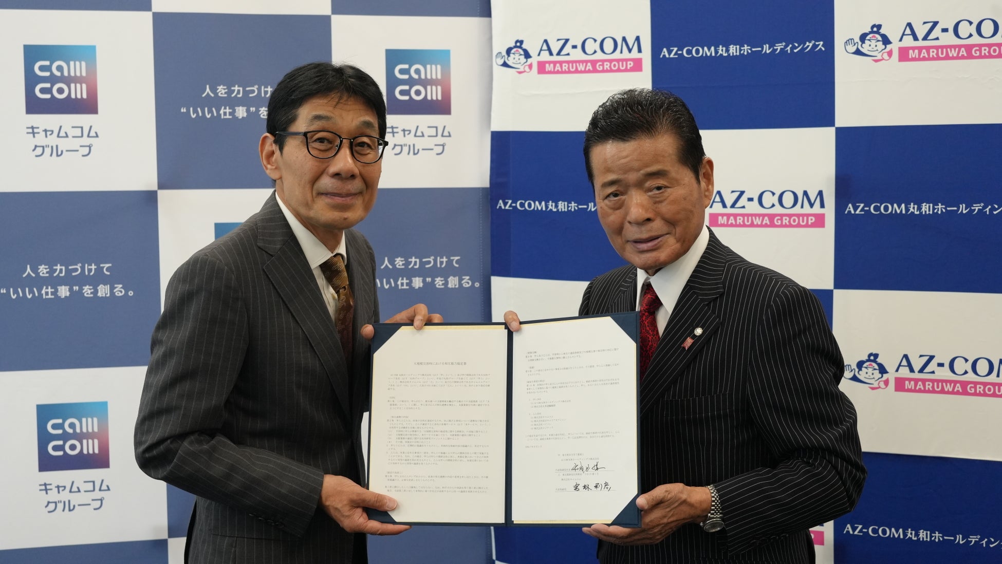 キャムコムグループ(本部:東京都新宿区、代表者:神保紀秀)の株式会社キャムコム(本社:東京都新宿区、代表取締役:宮林利彦、以下:キャムコム)とAZ-COM丸和ホールディングス株式会社(本社:埼玉県吉川市、代表取締役社長:和佐見勝、以下:AZ-COM丸和ホールディングス)は、2025年8月1日(金)、「大規模災害時における相互協力協定」を締結しました。