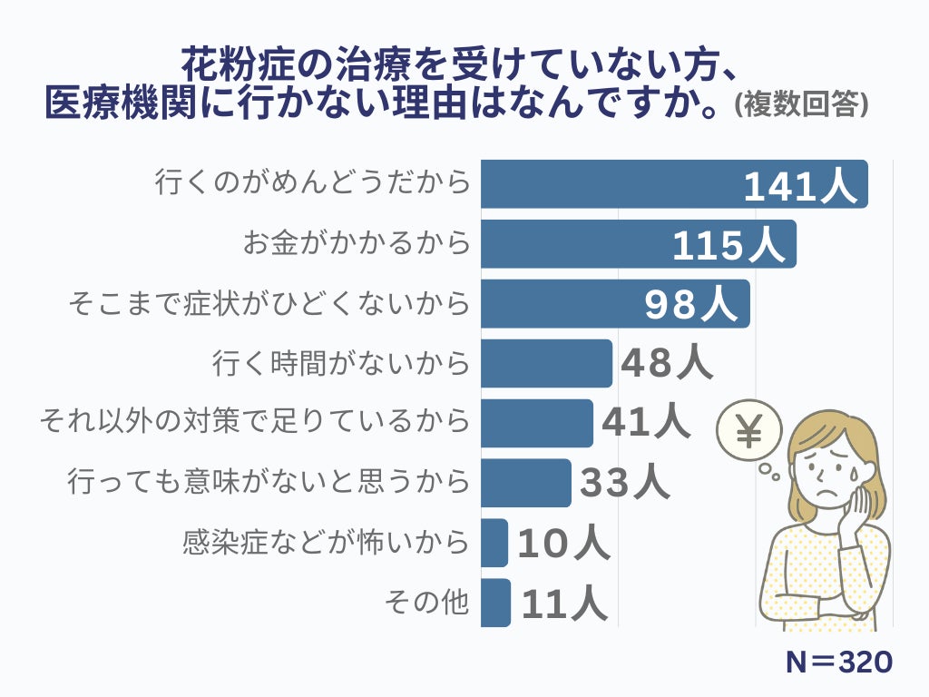 約6割が花粉症の症状によりパフォーマンスが低下と回答。治療未受診の主な理由は「面倒だから」─花粉症に関する意識調査を実施