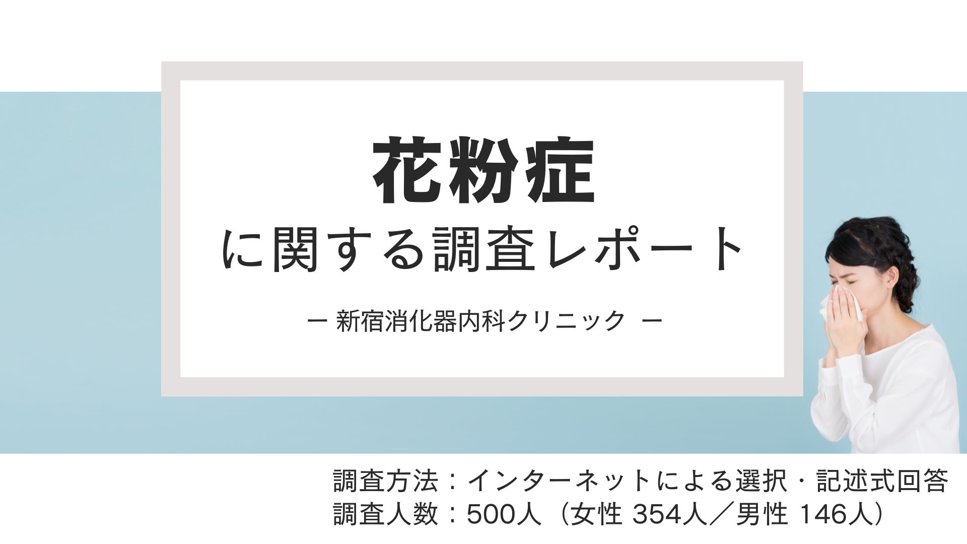 くしゃみ、鼻水、目のかゆみ――春になると多くの人が悩まされる花粉症。今年もその季節がやってきて、多くの方が悩まされました。新宿消化器内科クリニックでは、全国の花粉症経験者500名を対象に「花粉症に関するアンケート調査」を実施しました。